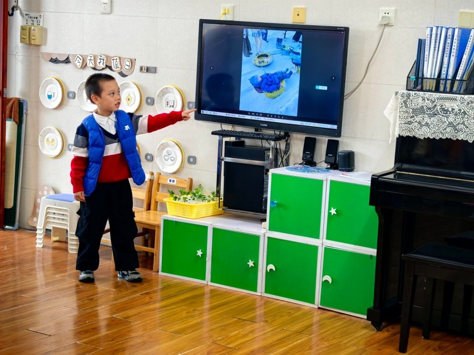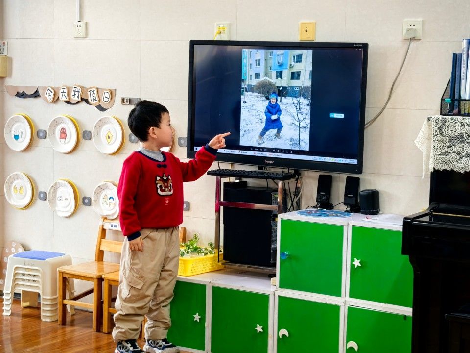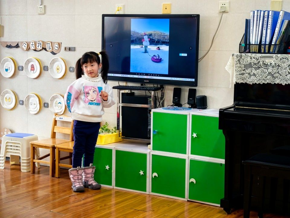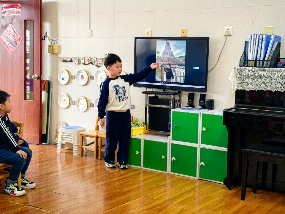 孩子们自信大方地分享着寒假里的精彩瞬间。有的孩子去了冰雪之城滑雪橇、堆雪人;有的去植物园、菜地看到各种各样的植物;还有的小朋友在梦幻的迪士尼城堡快乐的玩耍。