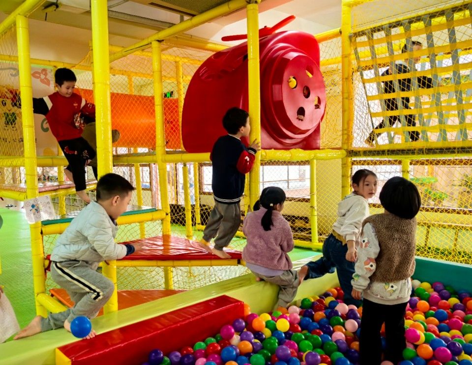 踏入淘气堡,就像闯进了一座欢乐的梦幻王国,海洋球区域热闹非凡,孩子们一头扎进五彩斑斓的球海里,就像欢快的小鱼在尽情遨游。有的小朋友躺在球堆里,手脚并用扑腾着,扬起大片“浪花”;有的则玩起了捉迷藏,小小的身影在球间灵活穿梭,时不时探出脑袋观察“敌情” 。整个淘气堡就像一个欢乐制造机,源源不断地输出快乐,孩子们在这儿释放着无限活力,玩得忘乎所以,沉浸在这无忧无虑的美好时光里 。