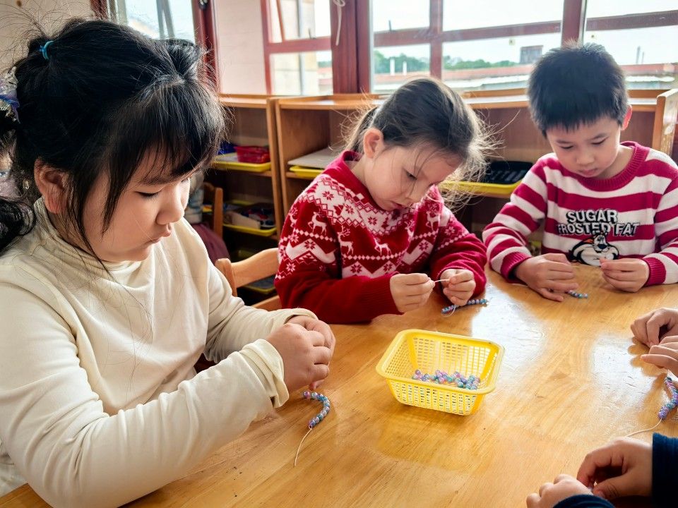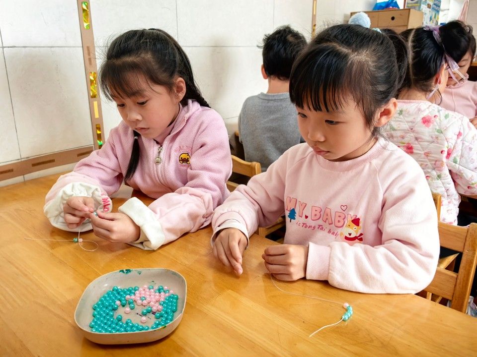 大三班的小朋友们准备在三八妇女节这个特殊的日子,这份亲手制作的手链,将成为孩子们献给妈妈、奶奶和外婆最暖心的礼物,传递着他们对长辈无尽的感恩与爱意。小手虽稚嫩,动作却无比认真。他们轻轻捏起一颗颗珠子,小心翼翼地串到彩绳上,那专注的模样,仿佛在完成一件世间最珍贵的艺术品。每一颗珠子都承载着孩子们纯真的爱,每一次穿串都是对亲人深深的祝福。