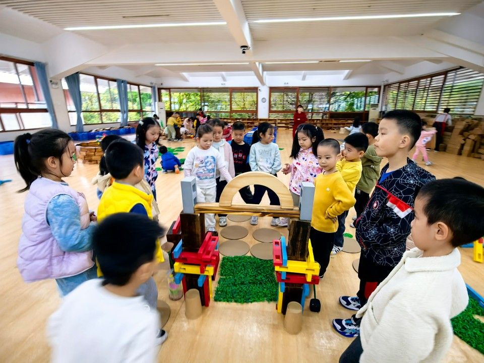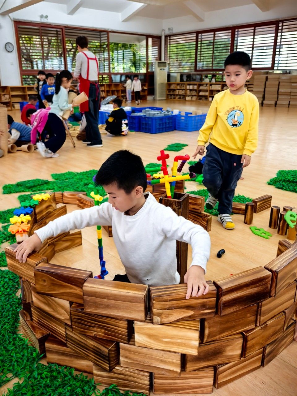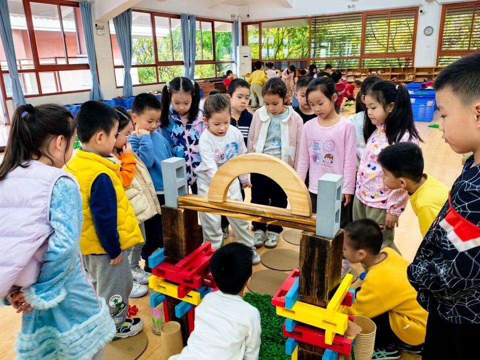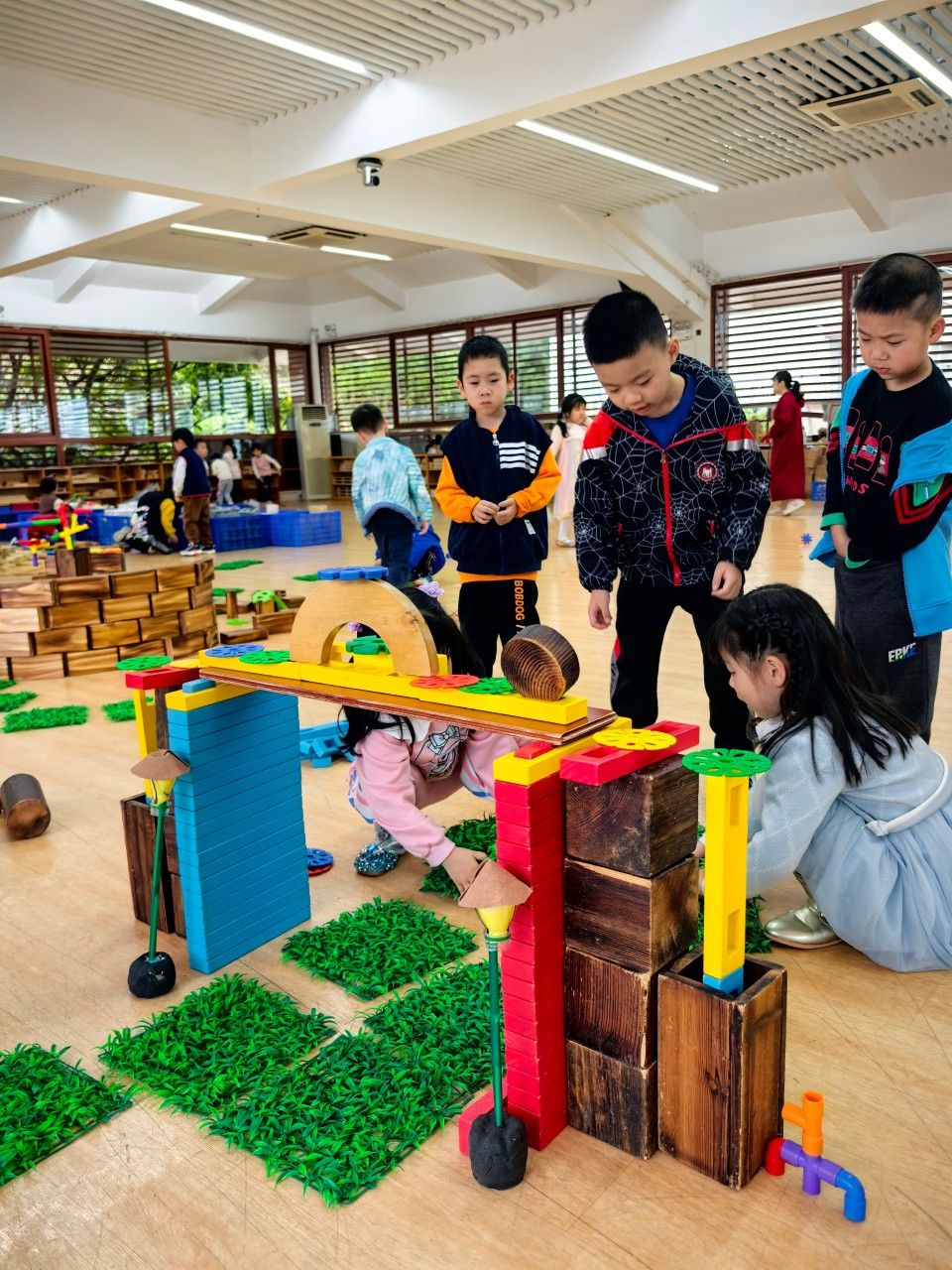 在阳光满溢的建构区里,大三班的哥哥姐姐牵手中七班弟弟妹妹的手,开启了一场奇妙的建构之旅。“来,弟弟妹妹们,我们一起搭个中山公园吧!”搭建过程中,遇到难题了,大家齐心协力一起解决,欢声笑语回荡在建构游戏室,哥哥姐姐和弟弟妹妹们看着共同的作品,脸上洋溢着自豪的笑容。不仅搭起了一座公园,更是搭建起了大带小、手牵手的纯真友谊,让爱与合作在小小的建构区里生根发芽。