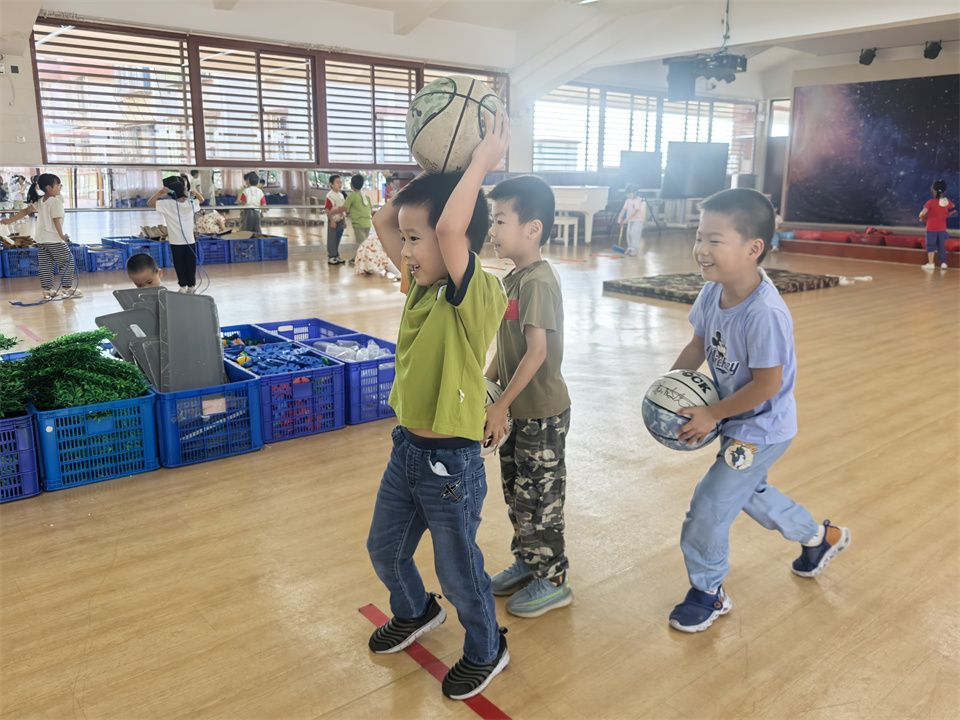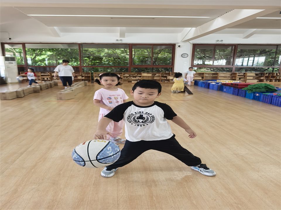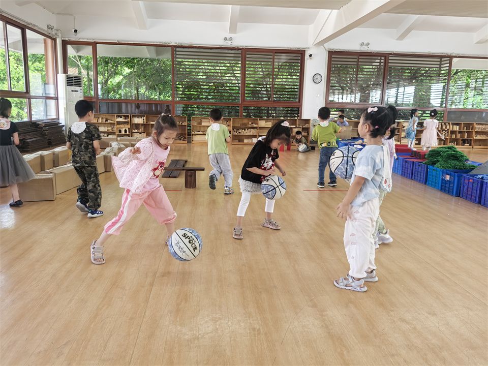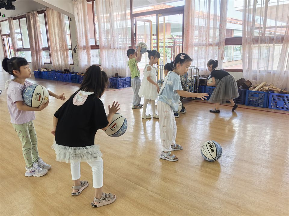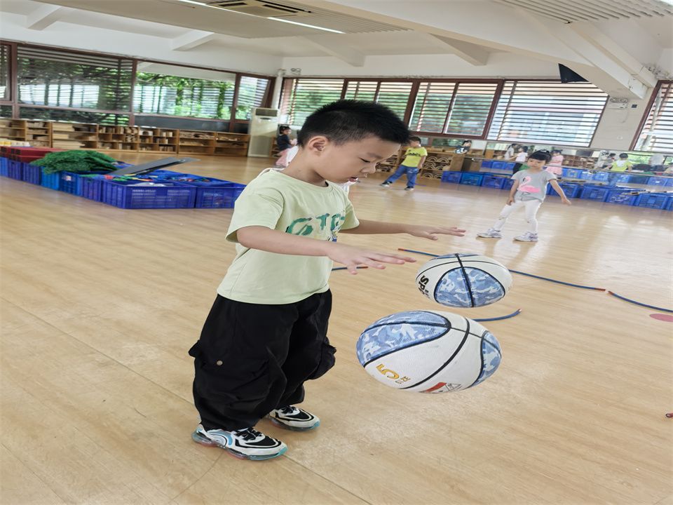 看!活力满满的宝贝们正在尽情地玩着篮球,有的熟练地运球,小小的身影敏捷地穿梭在纸箱之中;有的可以连续拍球、双手拍球、左右手交换拍球;有的聚在一起玩起来“冰球”游戏,在这片充满欢声笑语的操场上,孩子们尽情享受着篮球带来的快乐,他们用汗水和热情书写着童年最美好的篇章。