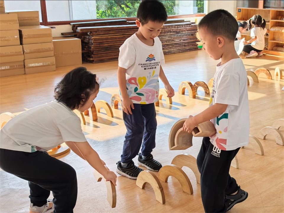 在建构游戏正如火如荼地进行着,他们小小的身影忙碌而专注,宝贝们越来越默契的合作,嘴里还不停地交流着自己的想法,在这个充满创意和想象的建构游戏中,大家尽情地发挥着自己的才能,用积木搭建出魅力的厦大校园。