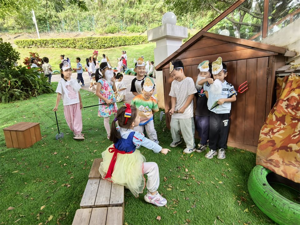 表演游戏就像一场奇妙的魔法盛宴。瞧,他们身着色彩斑斓的服装,化身为一个个可爱的角色,仿佛从童话世界中走了出来一样,不仅收获了快乐,还锻炼了自己的表达能力和合作精神呢!