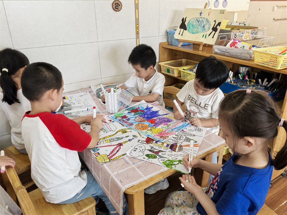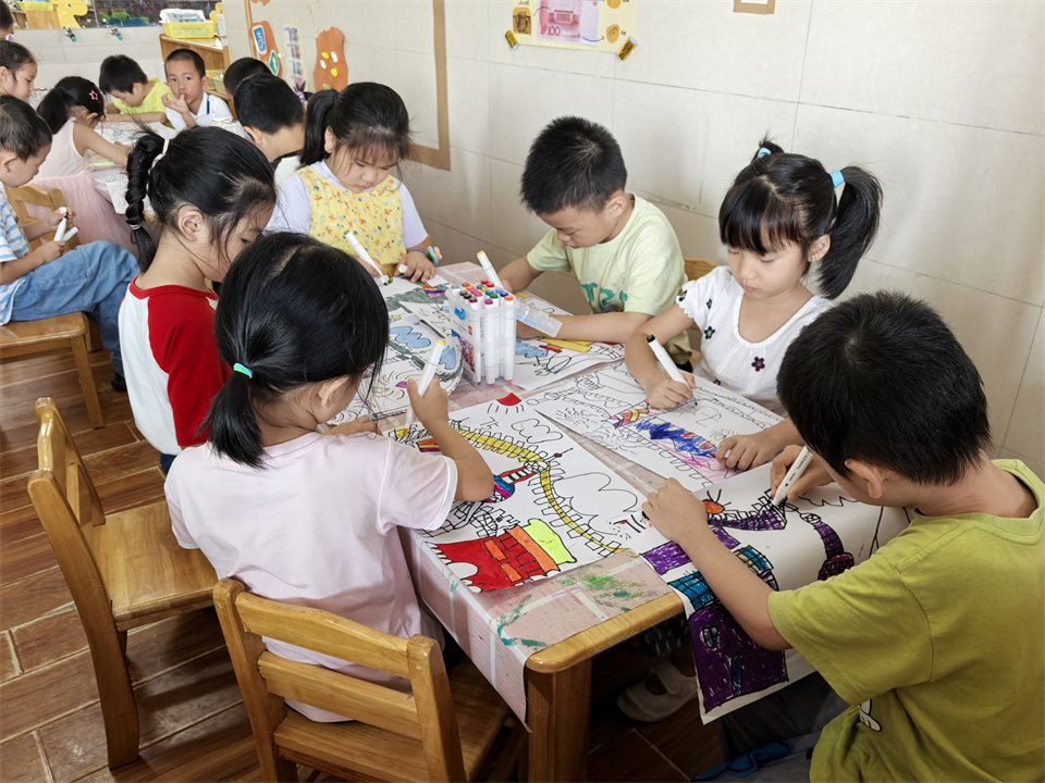 在明亮的教室里,宝贝们正全神贯注地绘画着“我的祖国大好河山”。他们小小的脸庞上满是认真与专注,手中的画笔犹如魔法棒一般,在画纸上勾勒出一幅幅绚丽多彩的画卷。他们的画中,有巍峨的高山、广袤的草原、璀璨的星空,每一处景色都饱含着他们对祖国深深的眷恋。在这个过程中,祖国的美丽在他们的心中生根发芽,他们用自己的方式为祖国献上了最真挚的祝福。