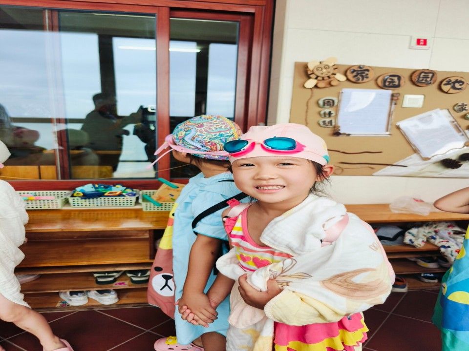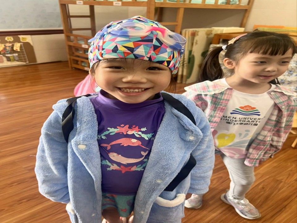 深秋十一月,大一班的小朋友终于盼来了久违的“嬉水”活动,十一月的天气特别舒适,真是个游泳的好日子。我们在老师和“志愿者”爸爸妈妈的帮助下以最快的速度换好泳衣,已经迫不及待要玩水去啦!你看,我们的装备多齐全,多可爱呀!