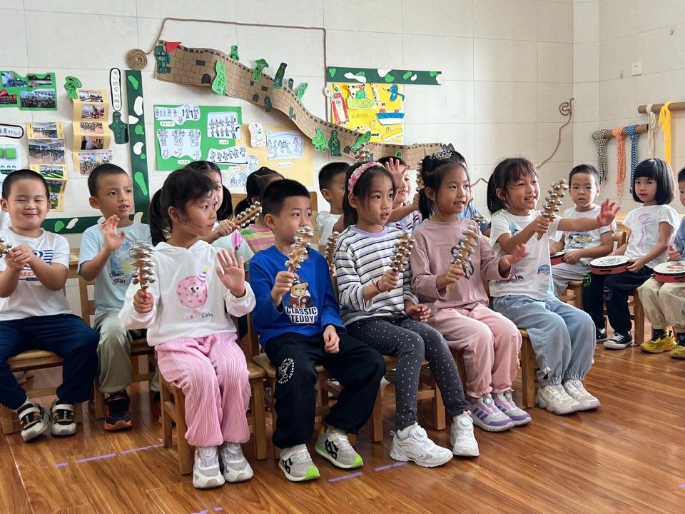 打击乐是孩子们很喜欢的一项音乐活动,伴着轻快的音乐,孩子们跟随着朗朗上口的歌词及有趣的音乐节奏,欢乐的敲打伴奏及歌唱,感受着歌曲带来的欢乐的氛围,感受着打击乐带来的无限快乐。