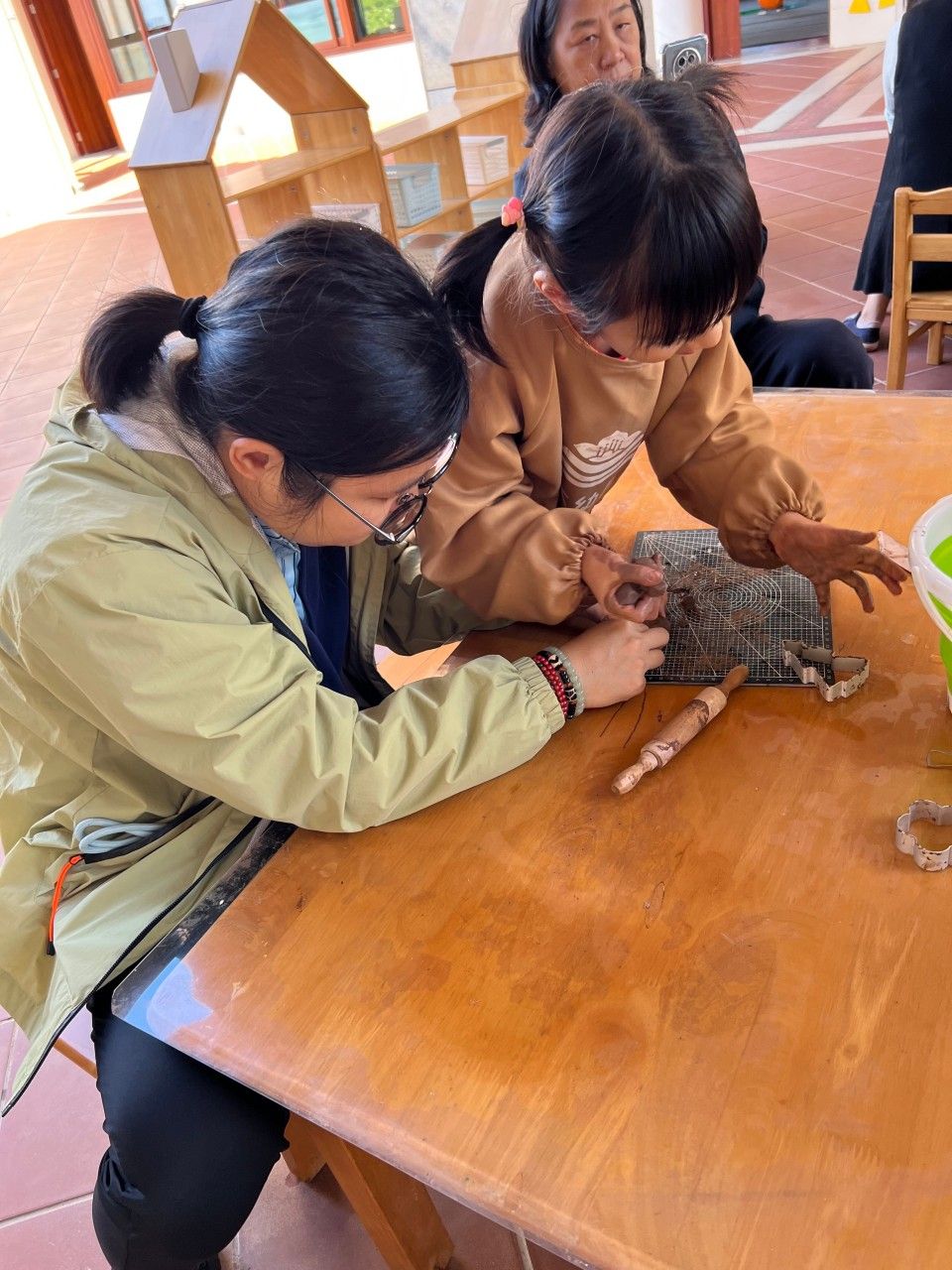 陶泥坊是宝贝们发挥创意泥塑的地方,孩子们将自己想象的美好事物用艺术创作的形式表现出来,作品丰富多彩,有爸爸妈妈的参与,孩子们的积极性更高了。