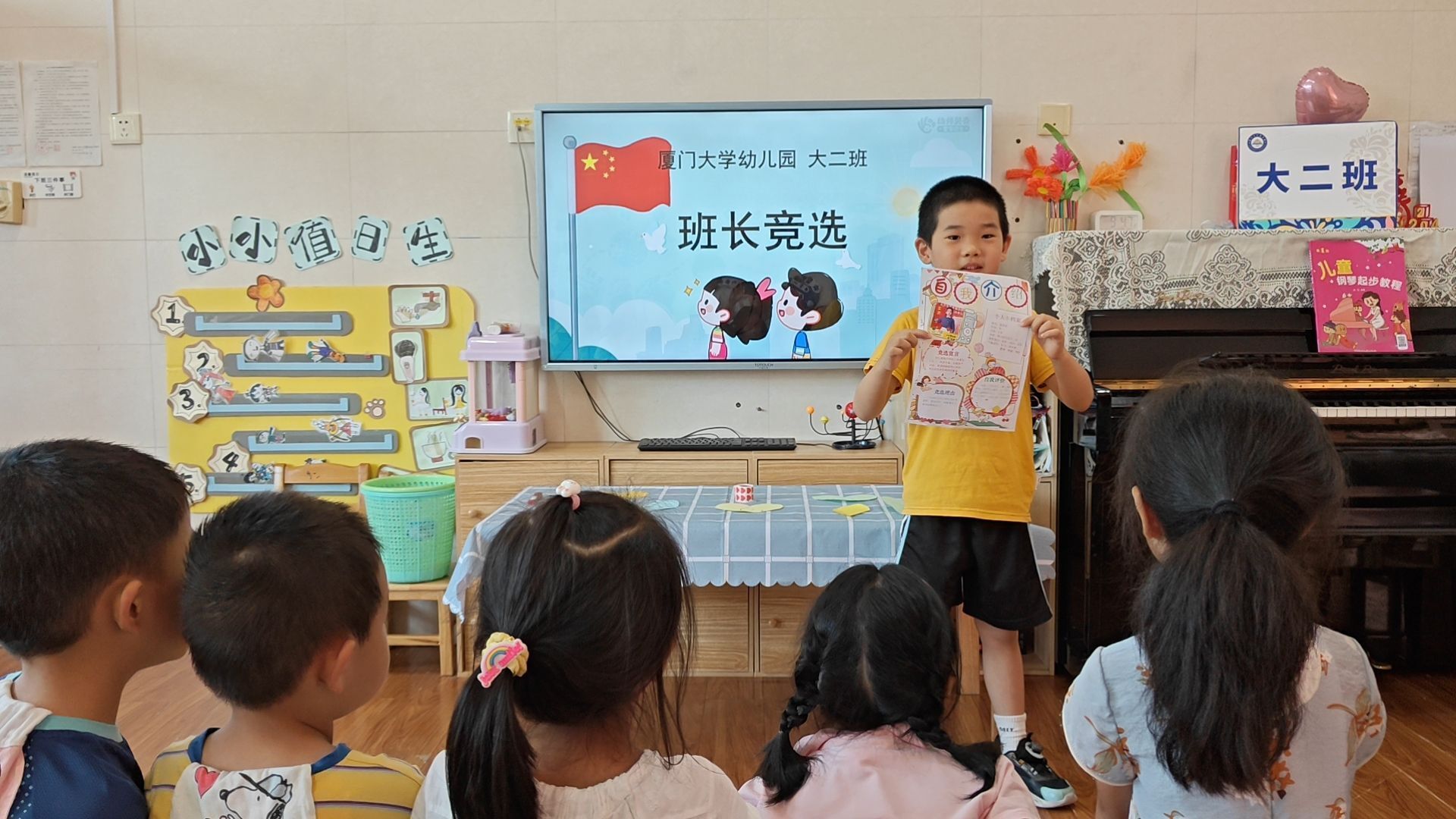 又值一年毕业季,伴着栀子花开的缕缕清香,大二班的孩子们即将毕业,即将迈入小学,开启全新的生活篇章。小学与幼儿园存在诸多差异,不仅所学课程不同,小学生更需学会自我管理。瞧!大二班幼小衔接系列活动之竞选小班长正如火如荼地开展着。