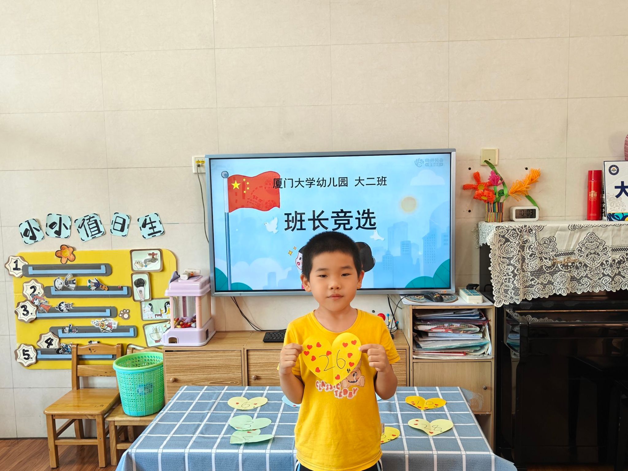 令人心潮澎湃的投票环节来临,孩子们在纸张上认真写下自己心目中的小班长人选。老师帮忙唱票后,郭卓岩小朋友以高票当选大二班的小班长。