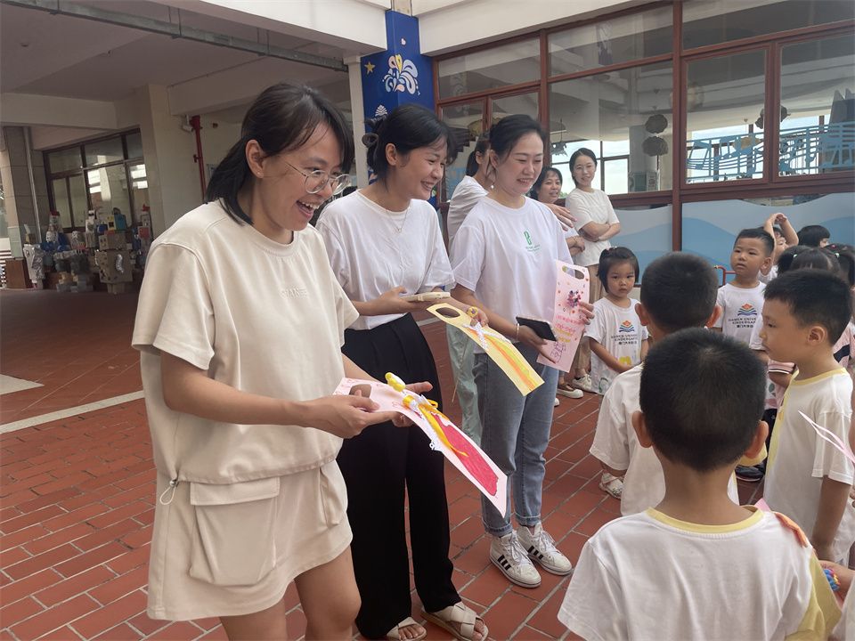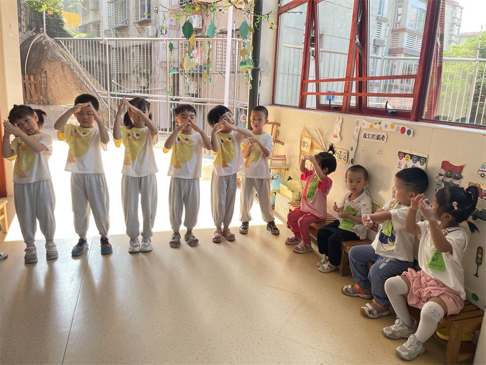作为幼儿园里的大哥哥大姐姐,大班孩子们承担起了一项特别的任务——前往大南园长开展“大带小”活动。他们热情地迎接新入园的弟弟妹妹,耐心地教他们如何进行手部消毒,用温暖的拥抱和安慰的话语平息了弟弟妹妹们的不安。孩子们还表演了手势舞,用他们的行动传递着关爱和友善。