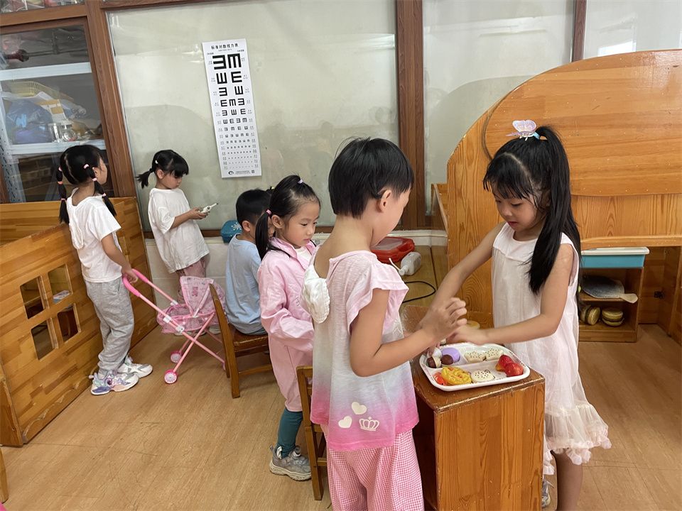 在这个月里,孩子们沉浸在了角色游戏的乐趣中。他们开起了热闹非凡的美食一条街,在这个小小的街道上,孩子们扮演着各种角色:有的变成了面包师,精心制作着香甜的面包和甜点;有的化身为烤肉摊主,挥舞着小铲子,烤制出美味的肉串。孩子们的欢声笑语充满了整个游戏区,他们在游戏中学习合作与交流,体验着成人的世界。