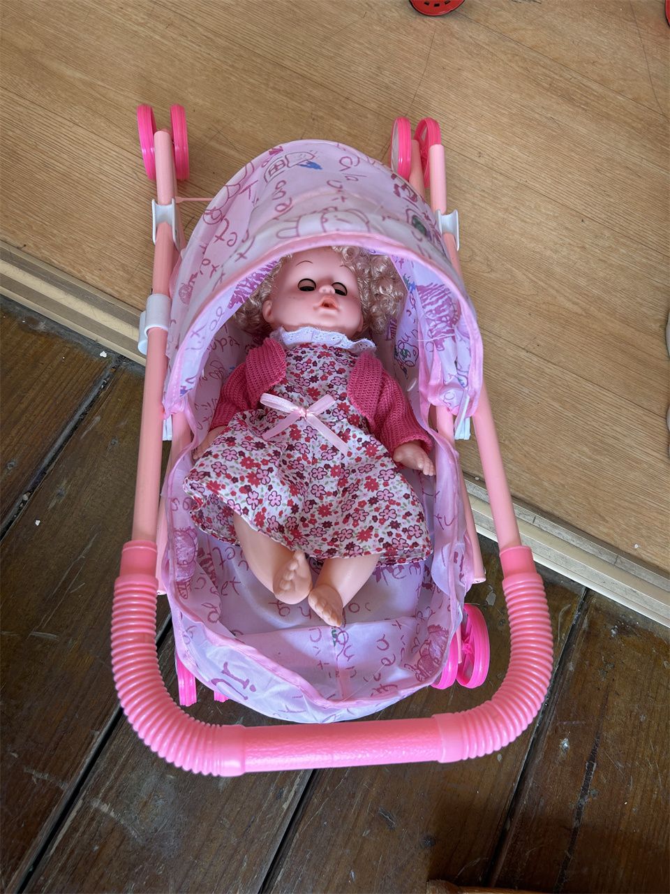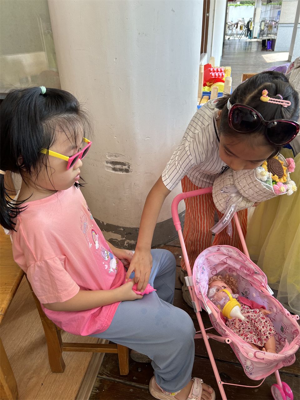 这时,王师傅发现了一辆小推车,车里躺着一个小宝宝,可是却没有家人陪伴。我们打了110,叫来了警察叔叔。警察叔叔热心地拿来了奶瓶,喂饱了宝宝,可是也找不到她的家人。怎么办呢?瑶瑶走了过来,说:“我带她走吧。”就把她带到医院,让医生检查了身体。小潘医生说:“就是心跳比较慢,才三下,其他的没问题。”瑶瑶就把宝宝带回家了。
