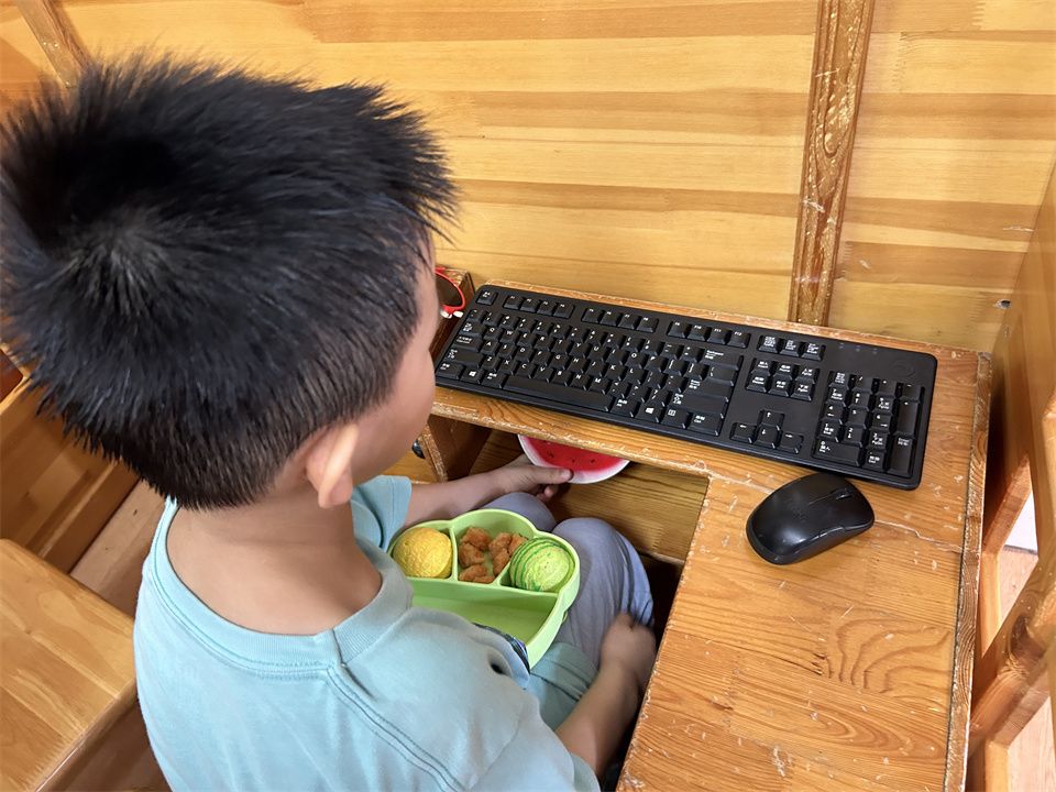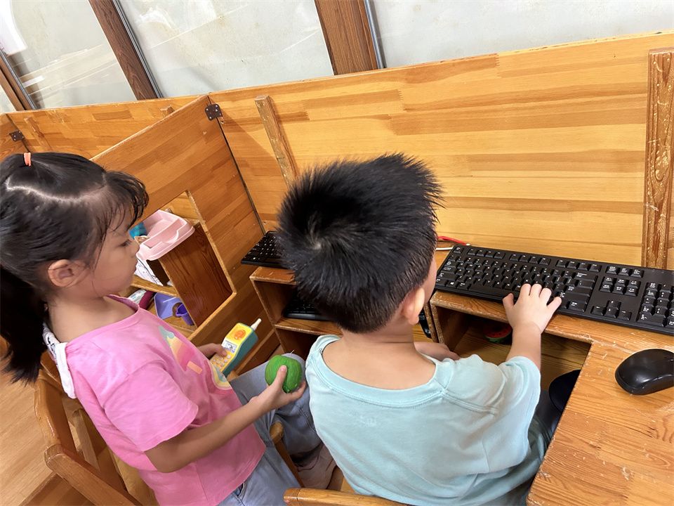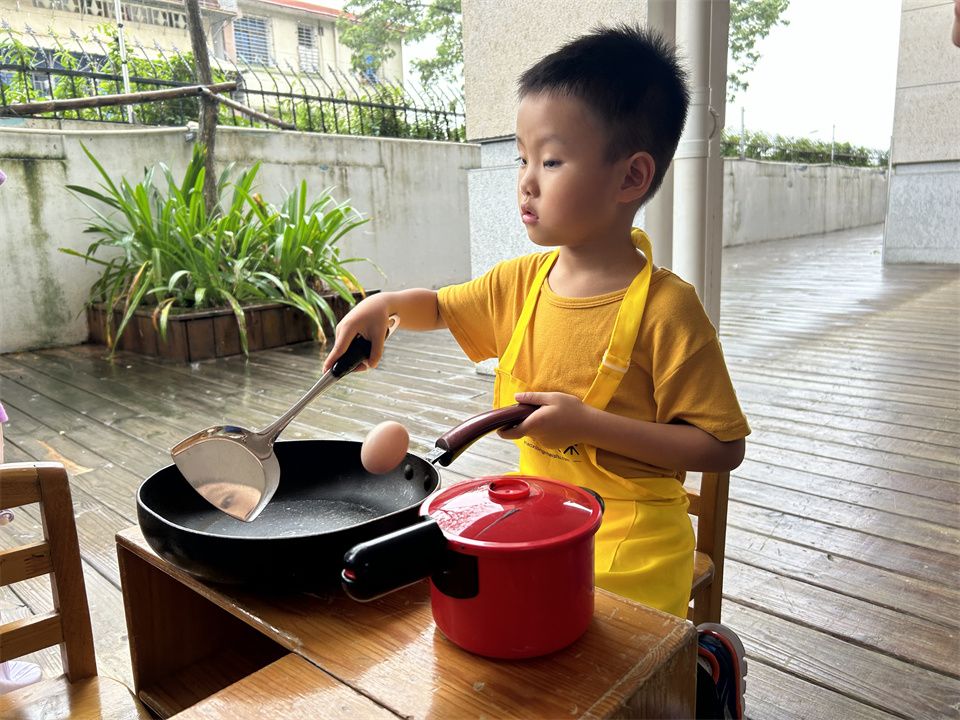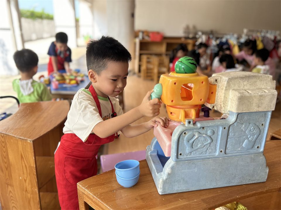 民以食为天!小吃店是孩子们最为喜欢的游戏之一。王师傅正在榨果汁,谢师傅大勺抡起来,一派热气腾腾的气象。好吃的饭菜吸引了不少食客。