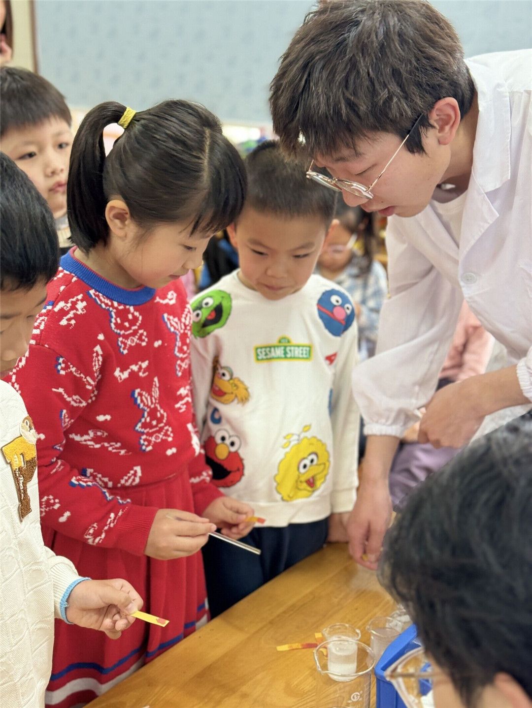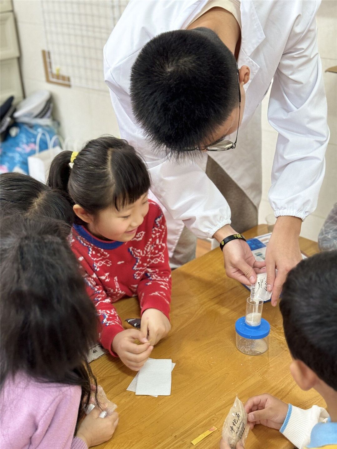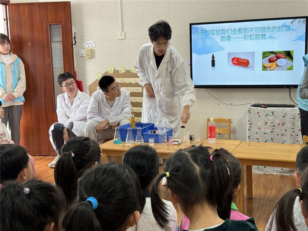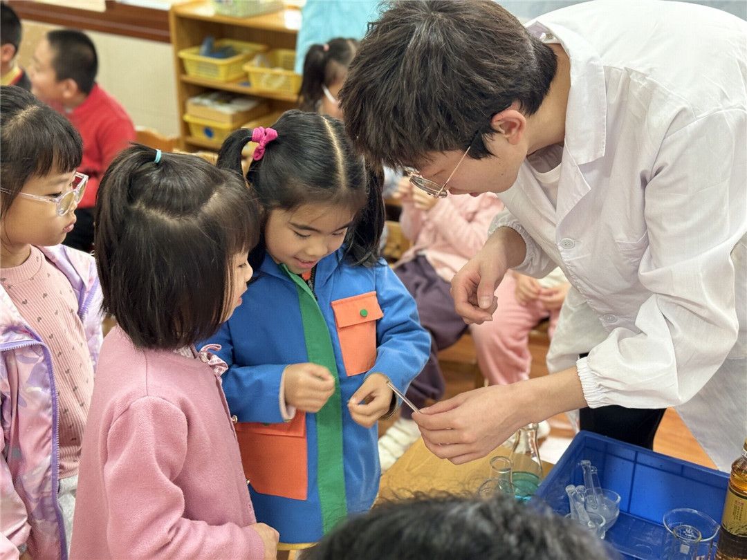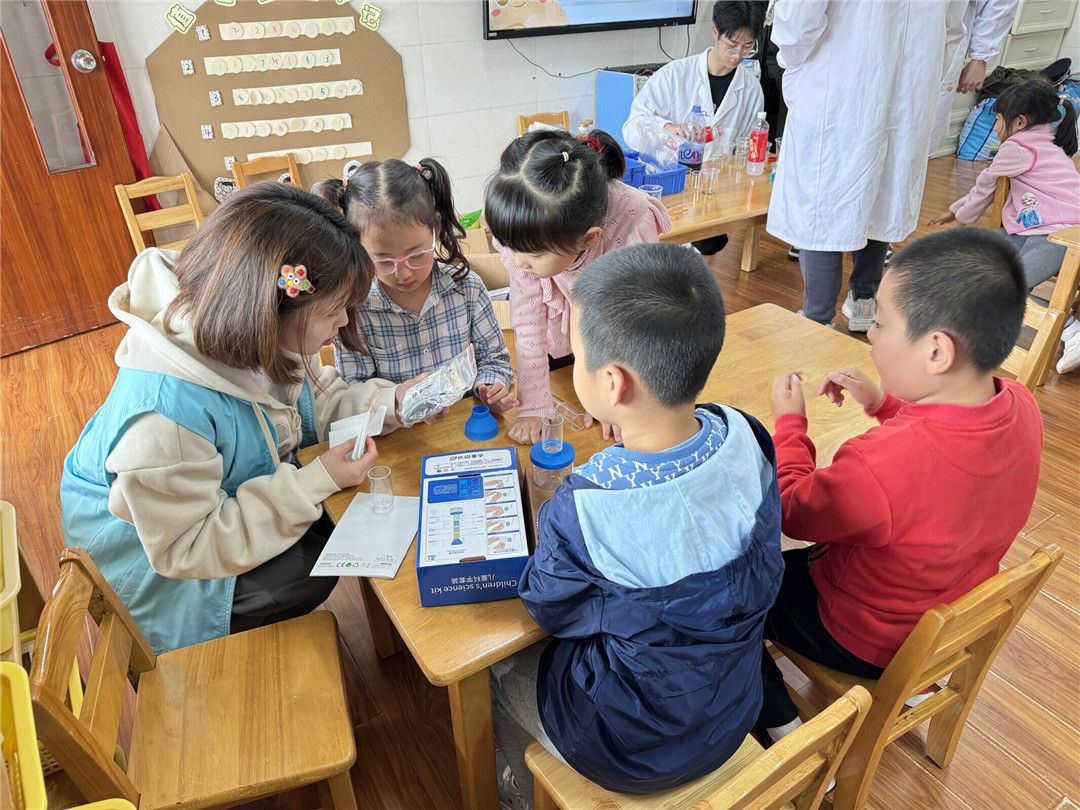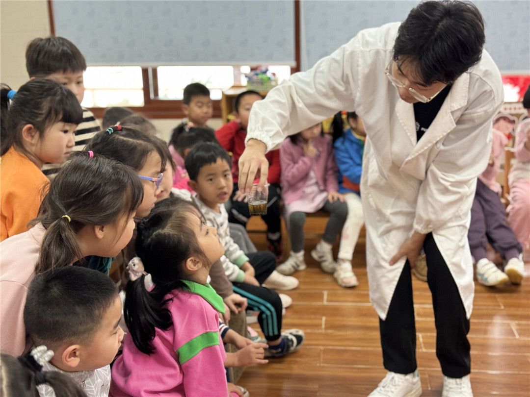 大八班的宝贝们对水十分感兴趣!为此,我们请来了厦门大学“科普进社区”社团的大学生助教,向宝贝们科普水的基本知识,展示并体验奇妙的水的各种科学小实验等等,让我们同宝贝们一起探秘奇妙水之旅吧!