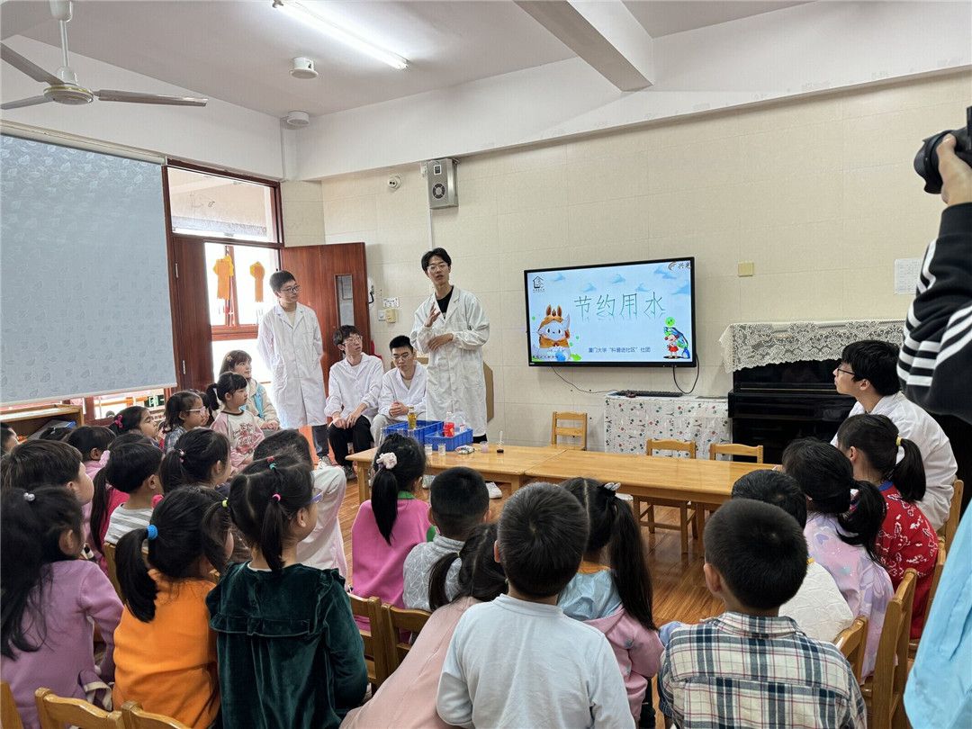 瞧!大学生助教们正在耐心地为宝贝们讲解着关于水的知识,宝贝们通过观看图片和有趣的视频,产生了保护水、爱惜水、节约用水的意识。