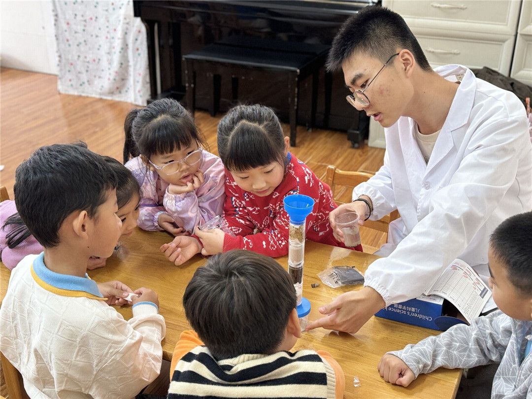 科学小实验激发孩子的探究欲望,了解污水净化器的原理,再到幼儿主动探究与思考污水净化器的制作方法,最后尝试制作成功!感谢大学生助教们的加入,让宝贝们对奇妙的水有了更全面的了解。让我们一起期待下一次的见面吧!