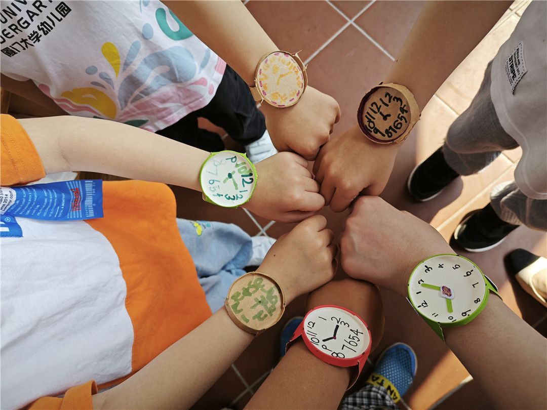 孩子们一起利用纸杯纸盘等废旧物,制作了一个个可爱的手表。小小的手表,有着大大的作用!它可以提醒我们上学不要迟到,提醒我们做事情要合理安排时间,不浪费时间。让我们一起来欣赏一下小朋友们的作品吧!
