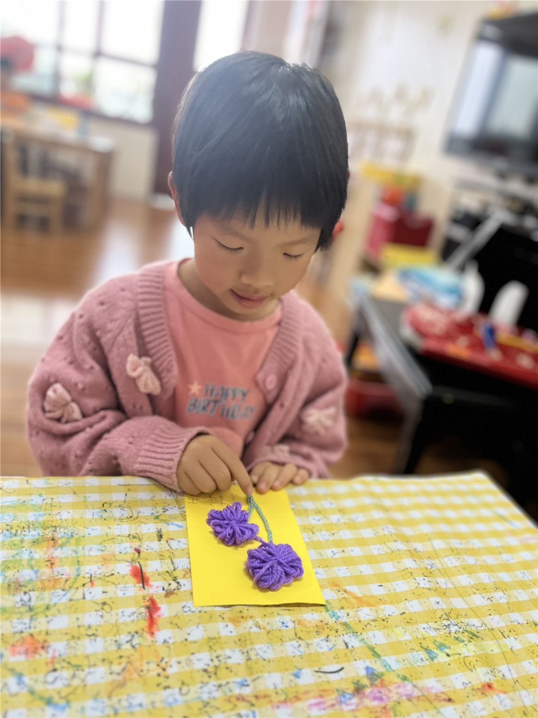 随着跳绳活动的进展,宝贝们开始对不一样的绳子产生兴趣,大家从家里收集了一些绳线,来做成好看的作品。