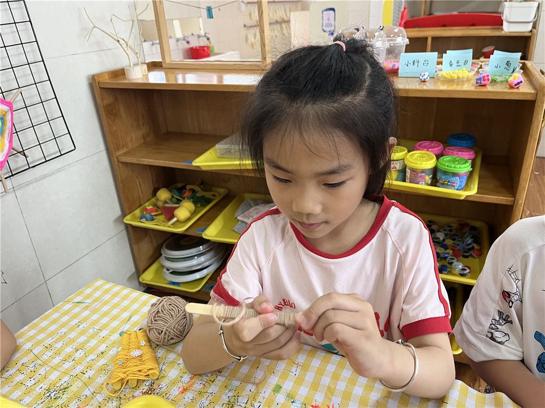 “那我们可以把毛线绕在雪糕棍上吗?你看这样像毛毛虫诶!”