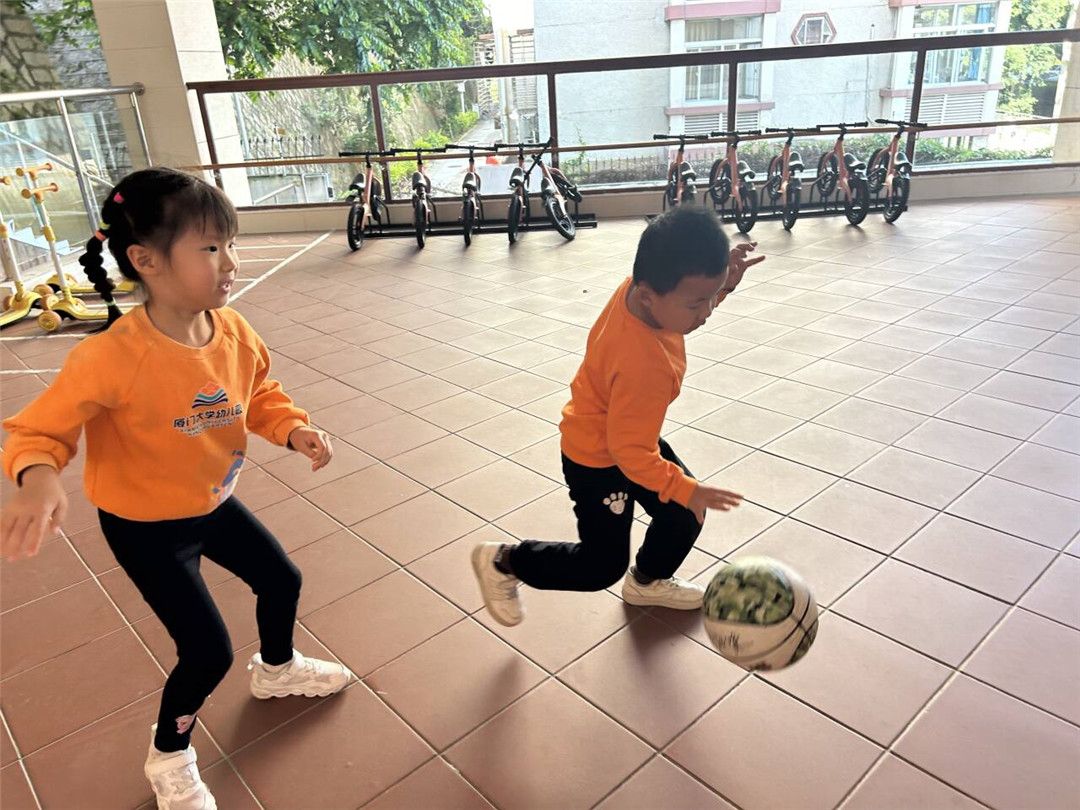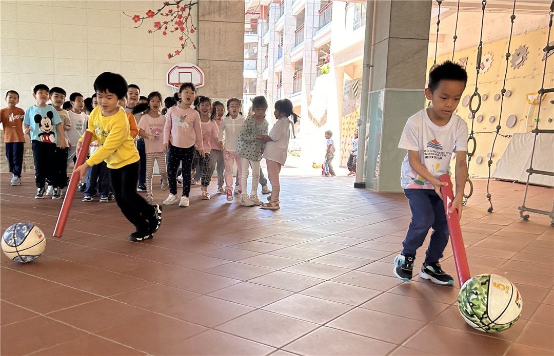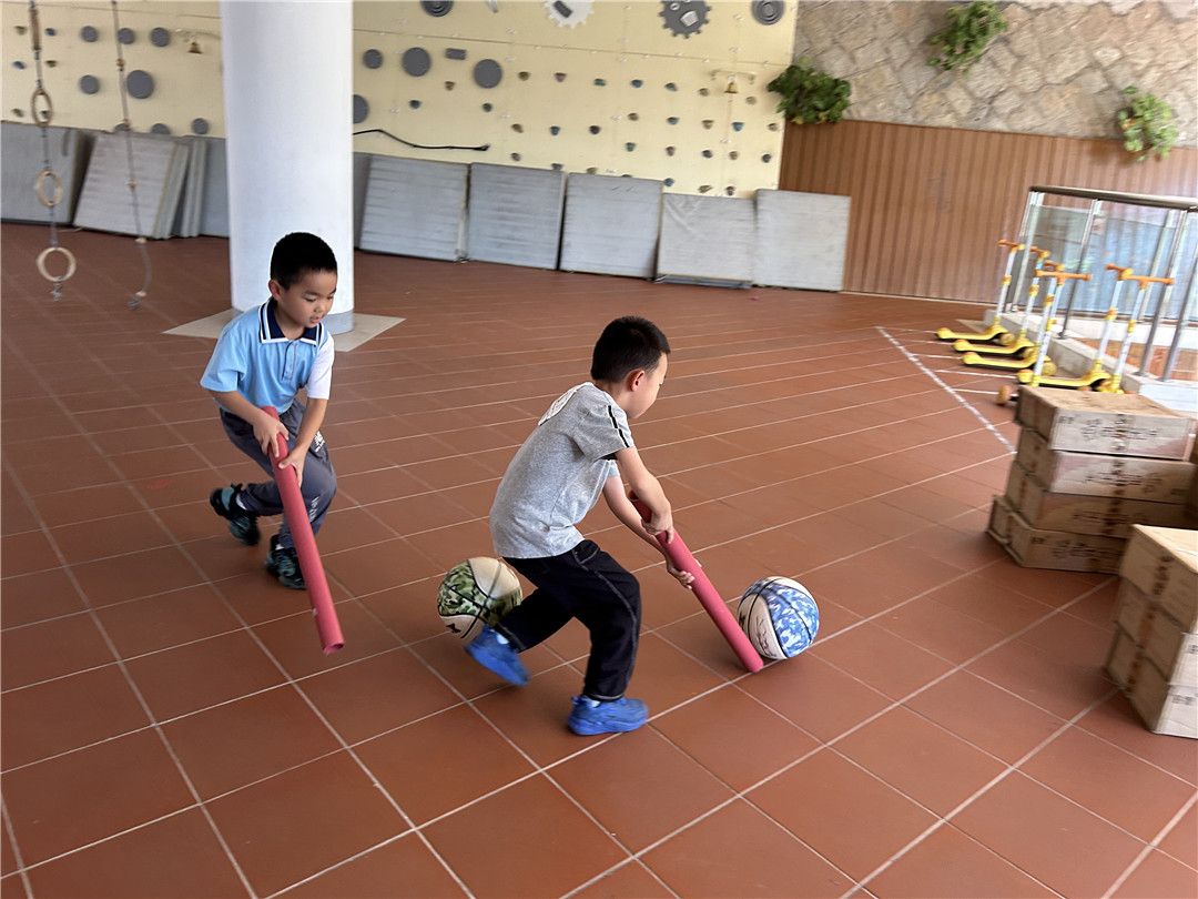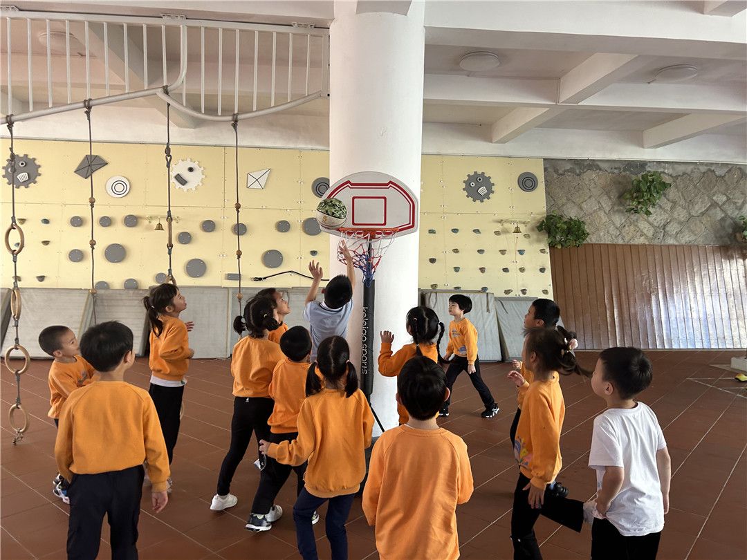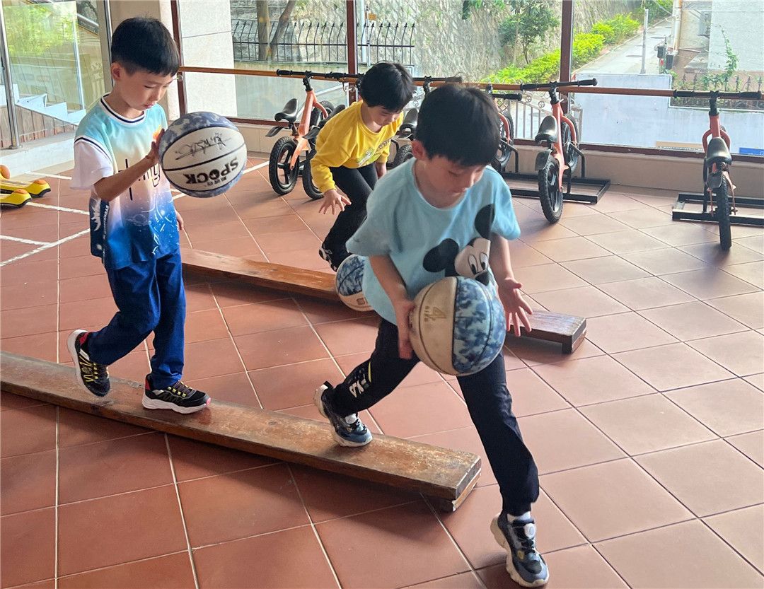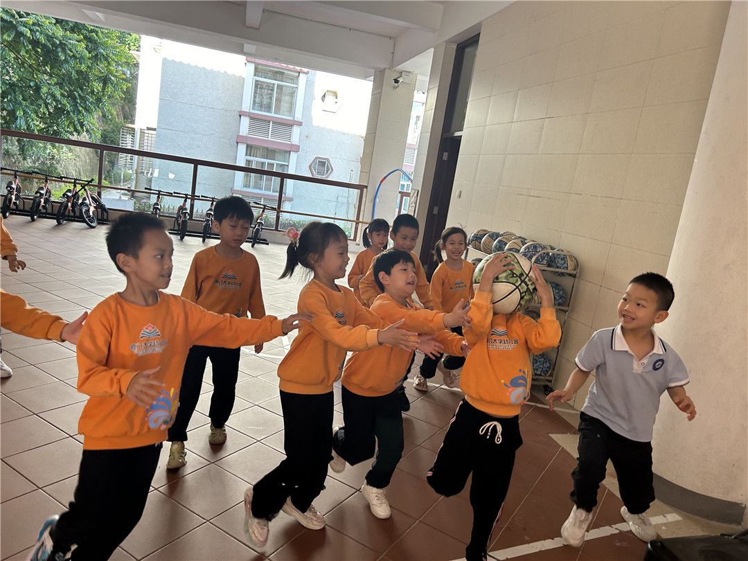 说起篮球,大四班的宝贝总能聊个不停,他们对篮球的痴迷不仅仅在聊天的内容里,户外活动的时间,也总会看到他们三五成群的汇集在一起玩耍。一粒普普通通的篮球,可以玩转出什么花样呢?让我们一探究竟吧。