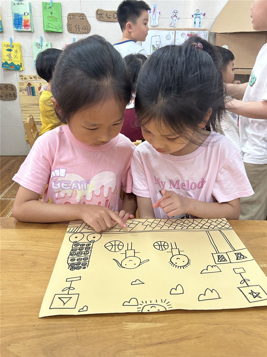 “我们可以来场篮球比赛吧?”“男生一组,女生一组。”“我觉得不公平,男生本来就比女生跑得快。”“我们先做一个比赛计划吧!”我们商量好规则、时间、场地后,开始分组做计划、设计队标。比赛分为两队,一队是“飞龙”队,一队是“小虎” ,上场比赛的人数均为10人,老师为裁判员,每队还分别有候补队员和后勤医护人员。