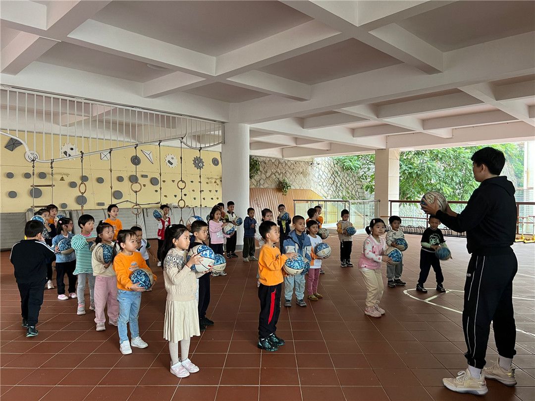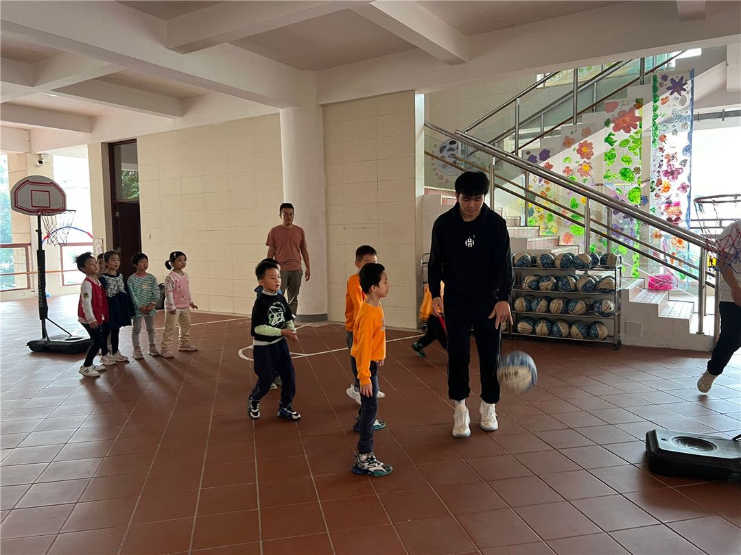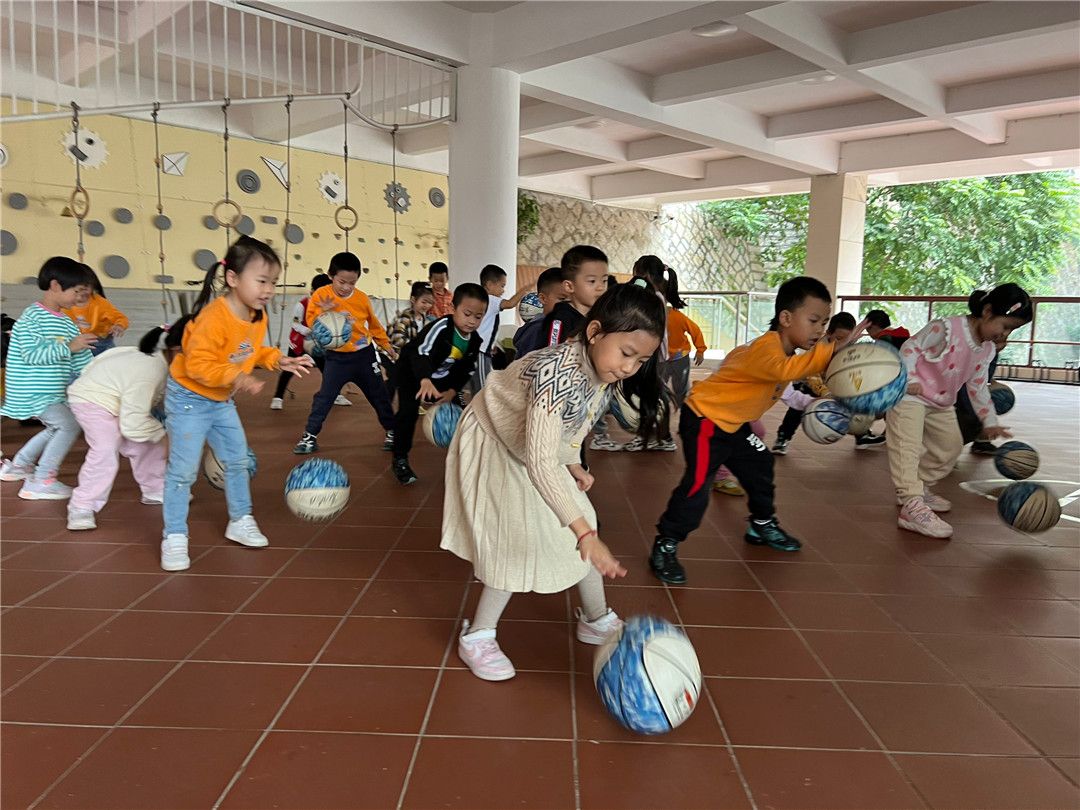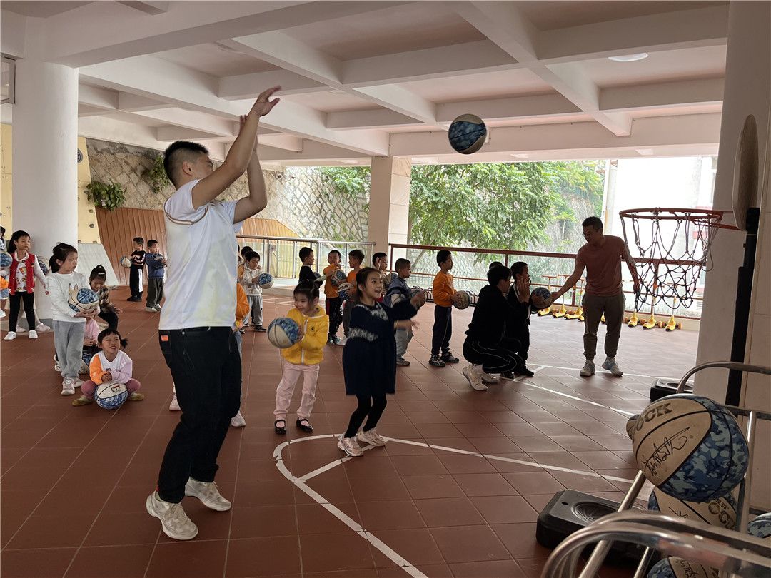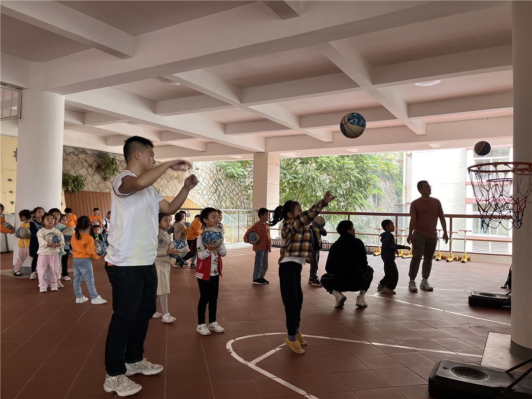 除了早晨还有丰富的活动呢!原来是我们请来了厦大篮球队的哥哥们,来教小朋友们打篮球比赛!哥哥先和小朋友们介绍讲解了篮球的运球方法和技巧,接着带着小朋友们一起做好热身和传球、运球等基本动作的学习。接着小朋友们分成两队、第一次站在赛场上体验篮球赛的精彩和乐趣。