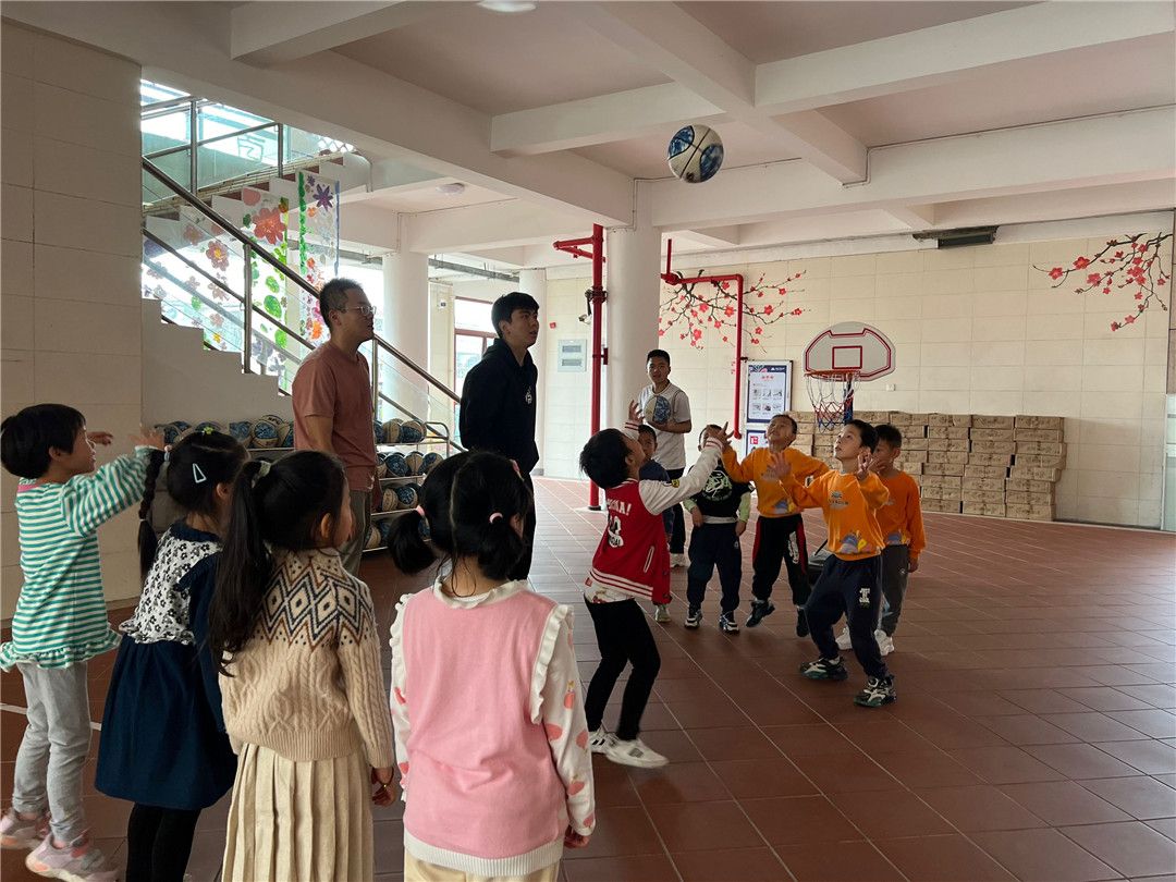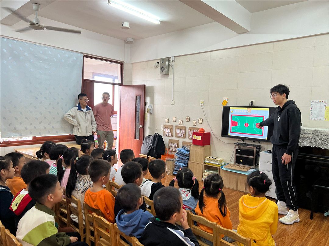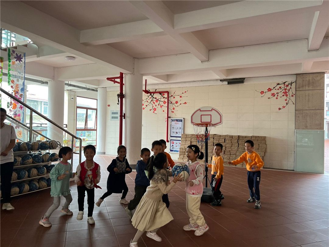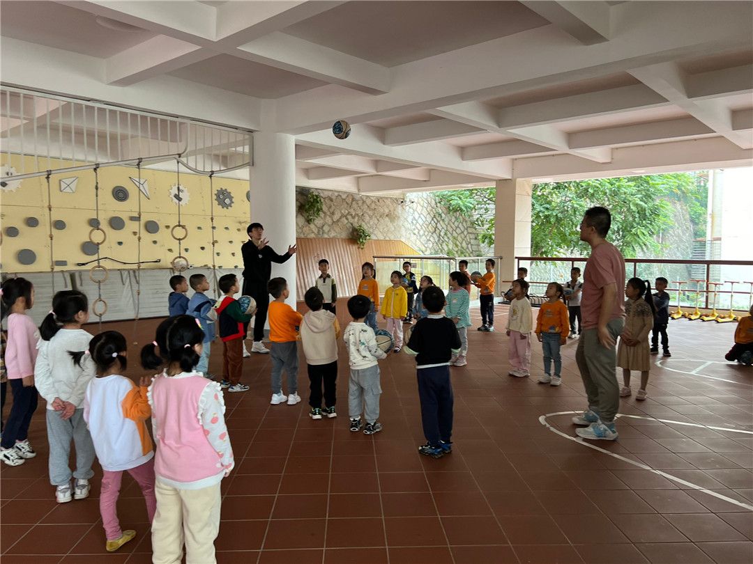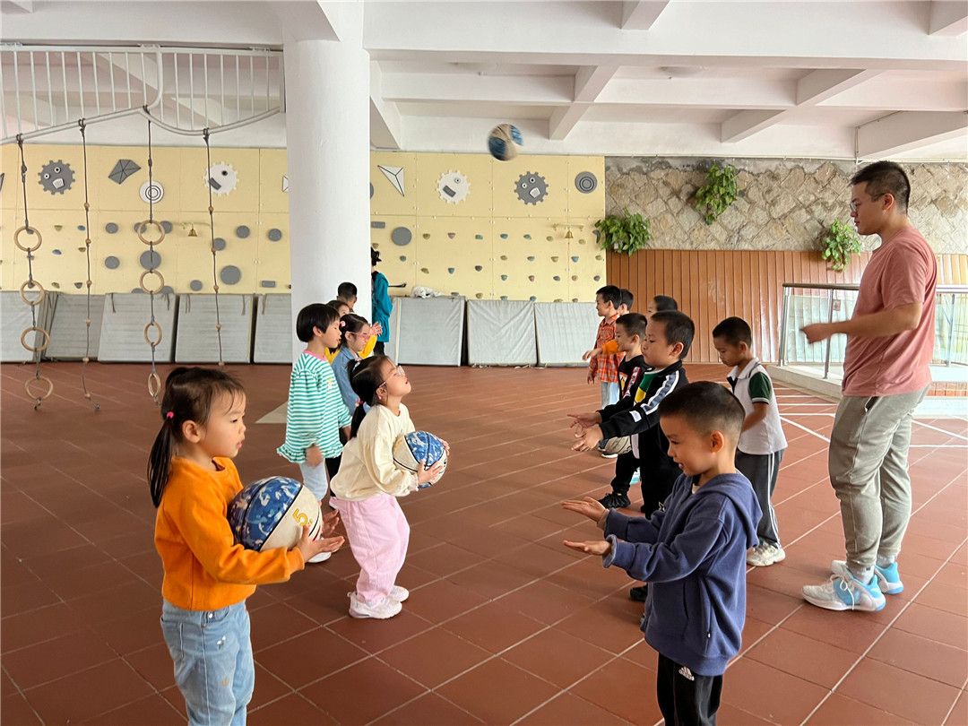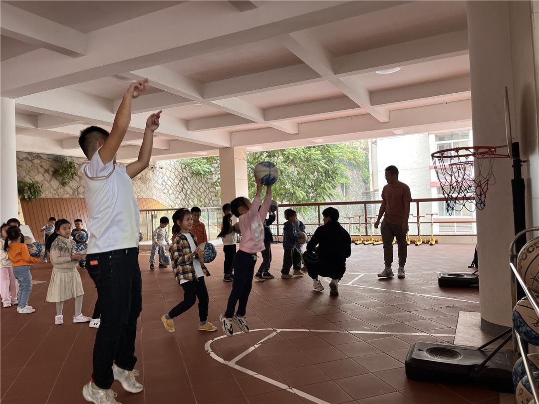 除了早晨还有丰富的活动呢!原来是我们请来了厦大篮球队的哥哥们,来教小朋友们打篮球比赛!哥哥先和小朋友们介绍讲解了篮球的运球方法和技巧,接着带着小朋友们一起做好热身和传球、运球等基本动作的学习。接着小朋友们分成两队、第一次站在赛场上体验篮球赛的精彩和乐趣。