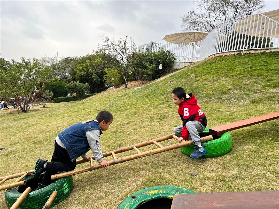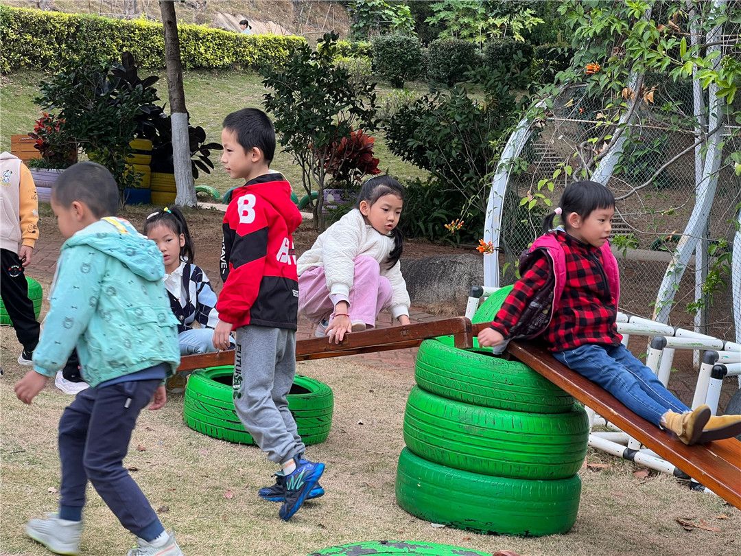 早上我们来到山坡轮梯区,宝贝们相互合作将轮胎和梯子相互组合搭成了滑滑梯和轨道,“这个滑梯太好玩了!我们一起玩吧!我还想去试试那个平衡轨道,我们来比比谁能先达到终点吧!”欢声笑语的早晨顺利开启了了我们的愉快的一天。