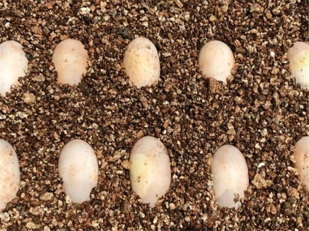 将乌龟蛋放在蛭石中,乌龟蛋上的红色线朝上,用蛭石填平并盖好盖子。