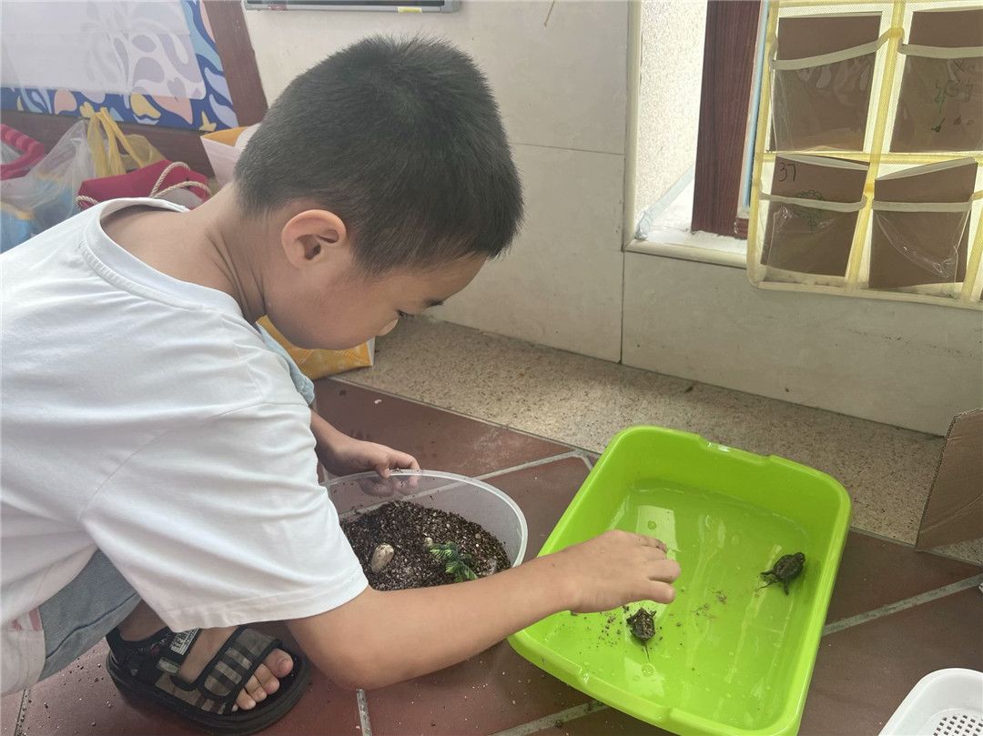 把他放到“小黑屋”,小朋友们每天都在期待着小乌龟孵化出来。