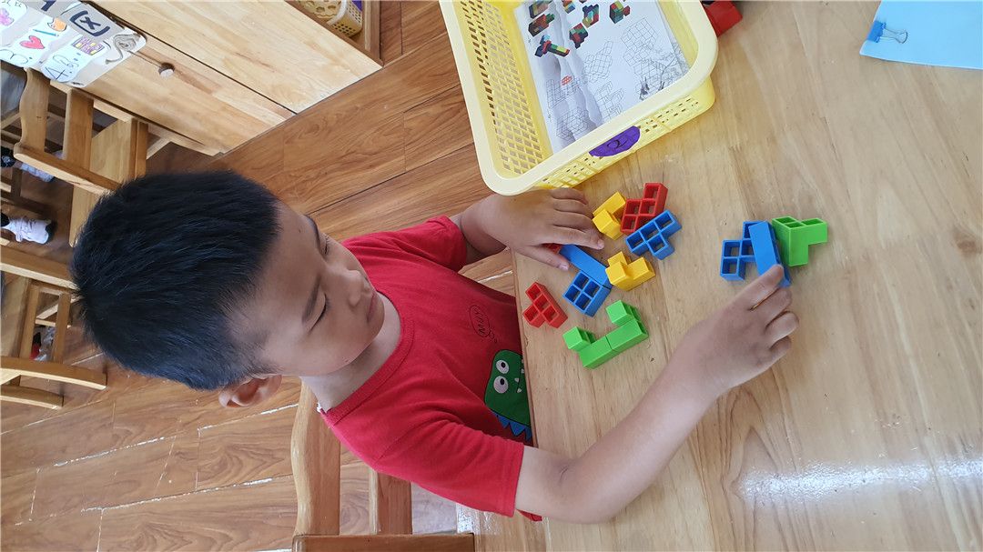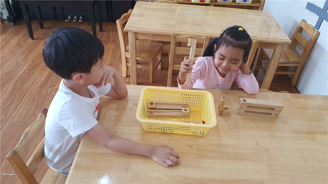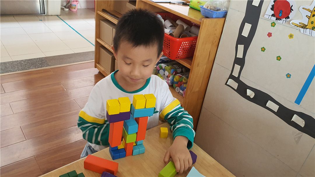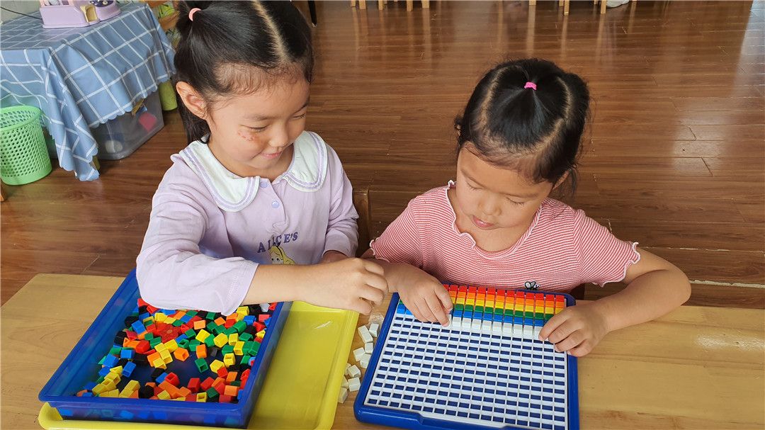 数学区里有神奇的数棒游戏,也有严谨的按列排序;有生活中经常用到的小毛球来让小朋友学习二维分类,也有三维积木拼搭锻炼小朋友们的空间想象力……