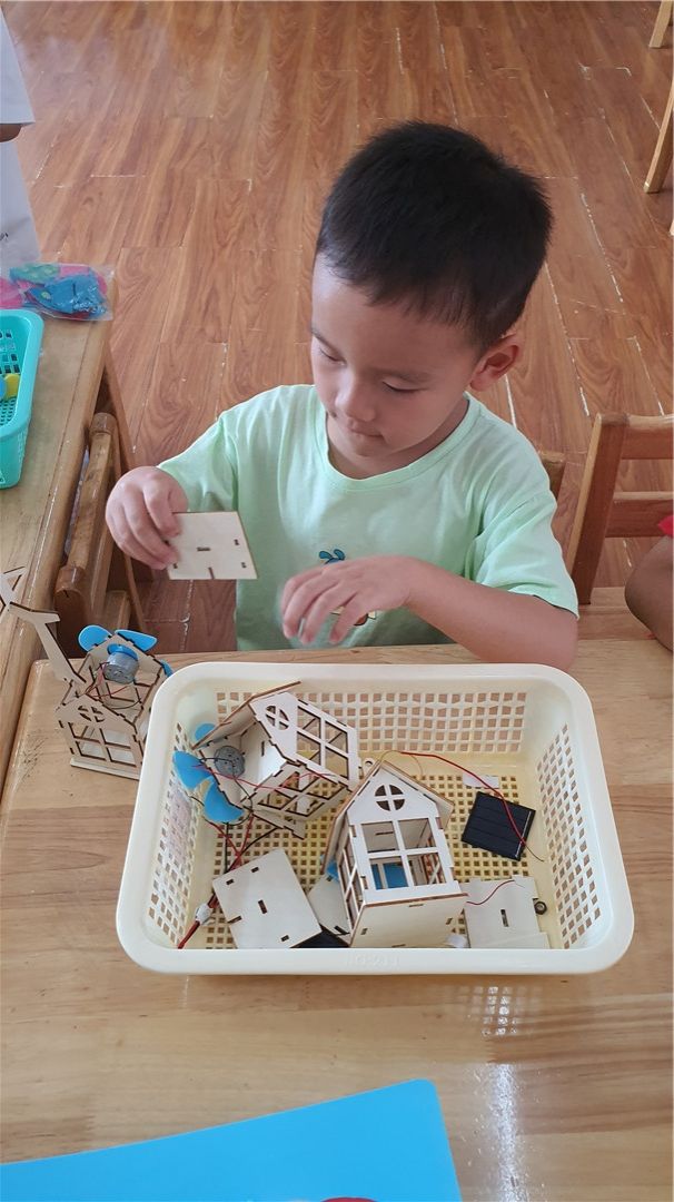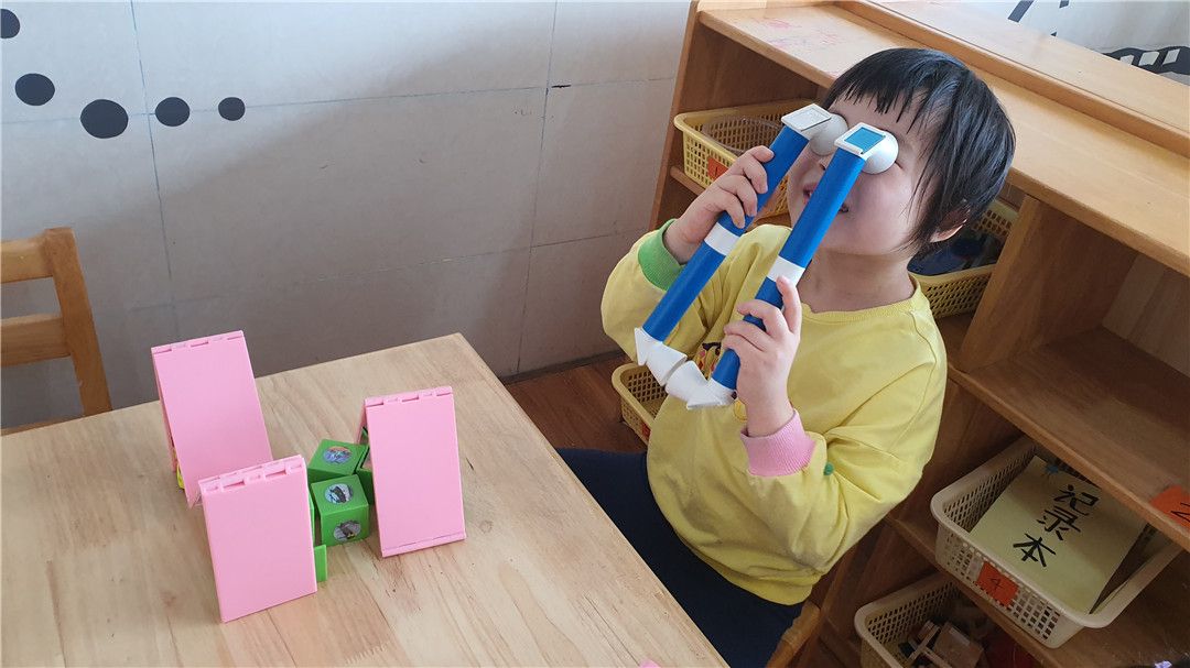 科学探索区里,有的探索着各种不一样的镜面呈像,观察潜望镜里能看到什么;有的认真制作太阳能小木屋,努力探索太阳能的奥秘;大家投入地摆弄着自己手中的游戏材料……小小科学家的梦想开始萌芽!