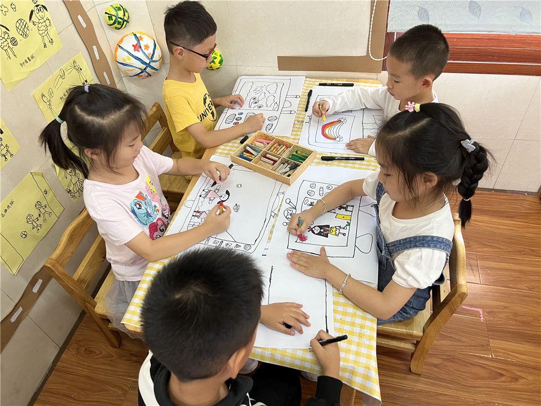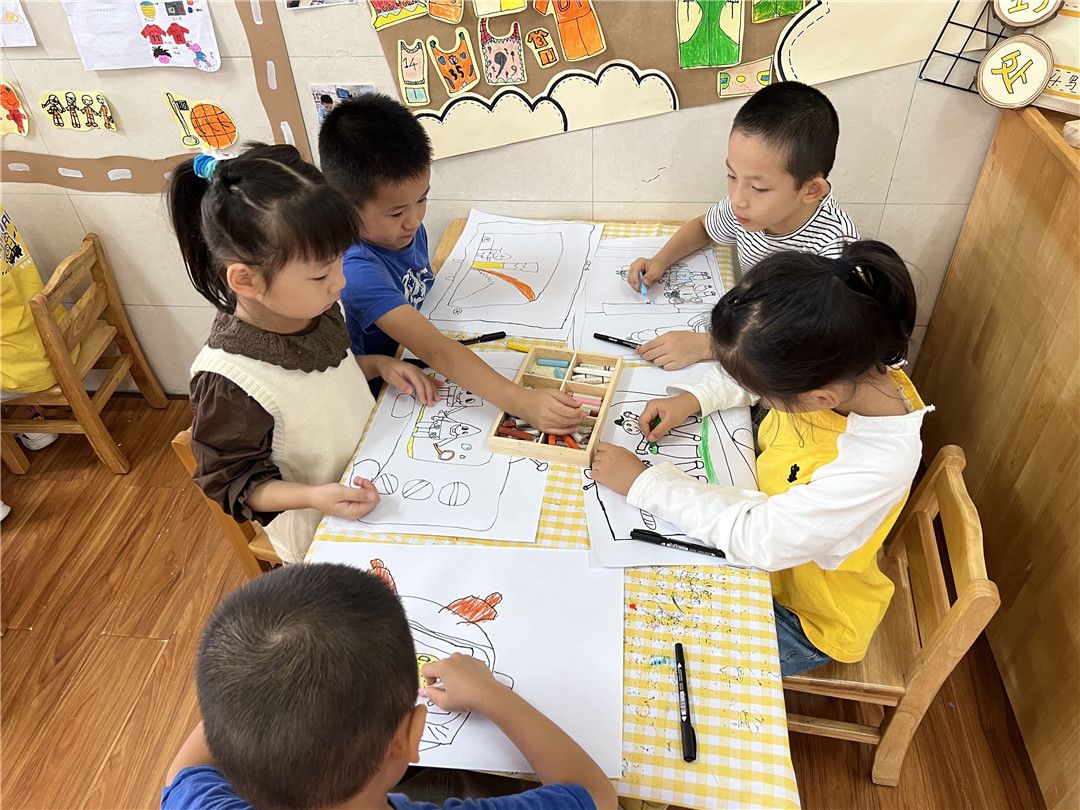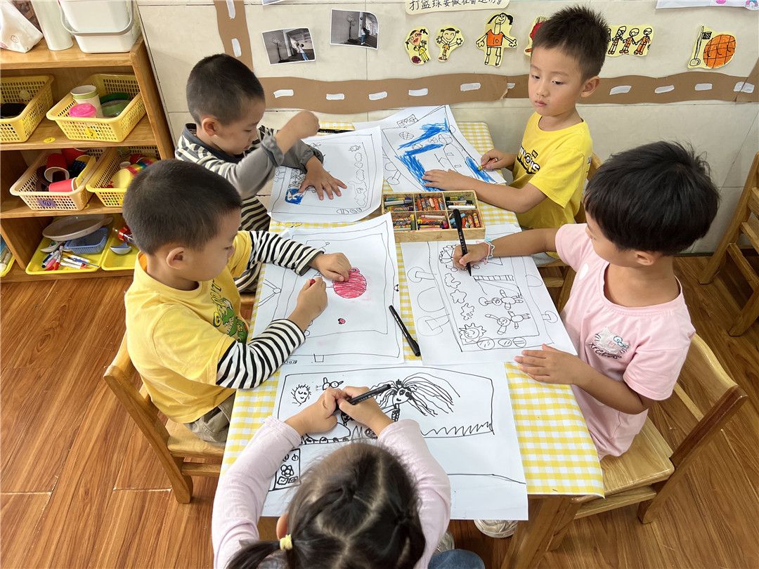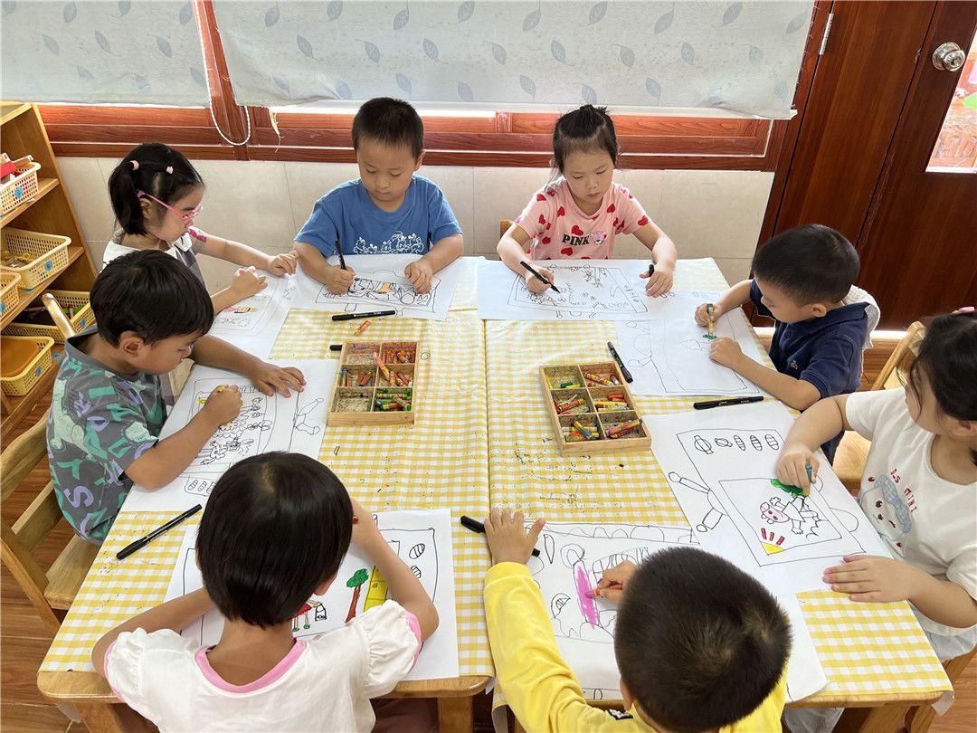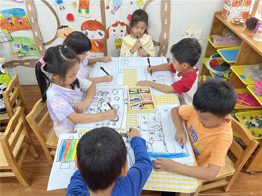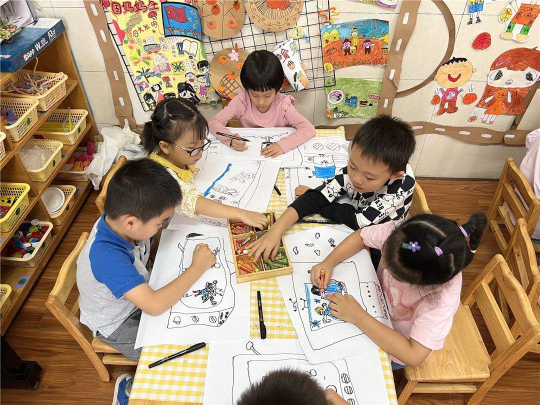 先来看看“小画家”们的创作日常吧!这次是以“我喜欢的电视节目”为主题,面对喜欢的主题,宝贝们兴奋又专注的投入到画作的绘制当中……