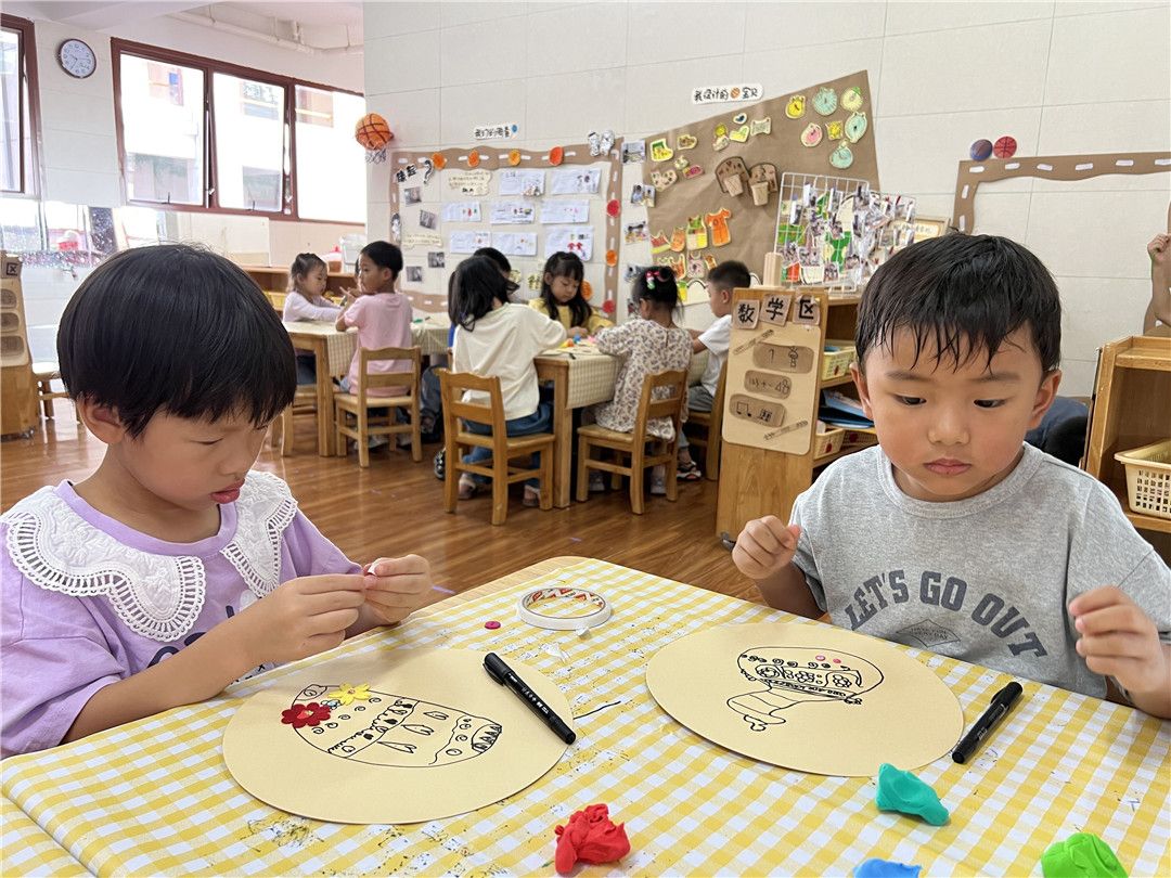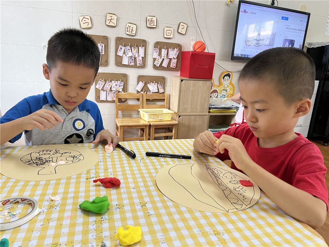 再来看看手工制作的时候,宝贝们的“匠心巧手”又给我们带来什么样的惊喜呢?宝贝们正在自己设计花瓶,他们能用线条和图形组合成好看的图案……