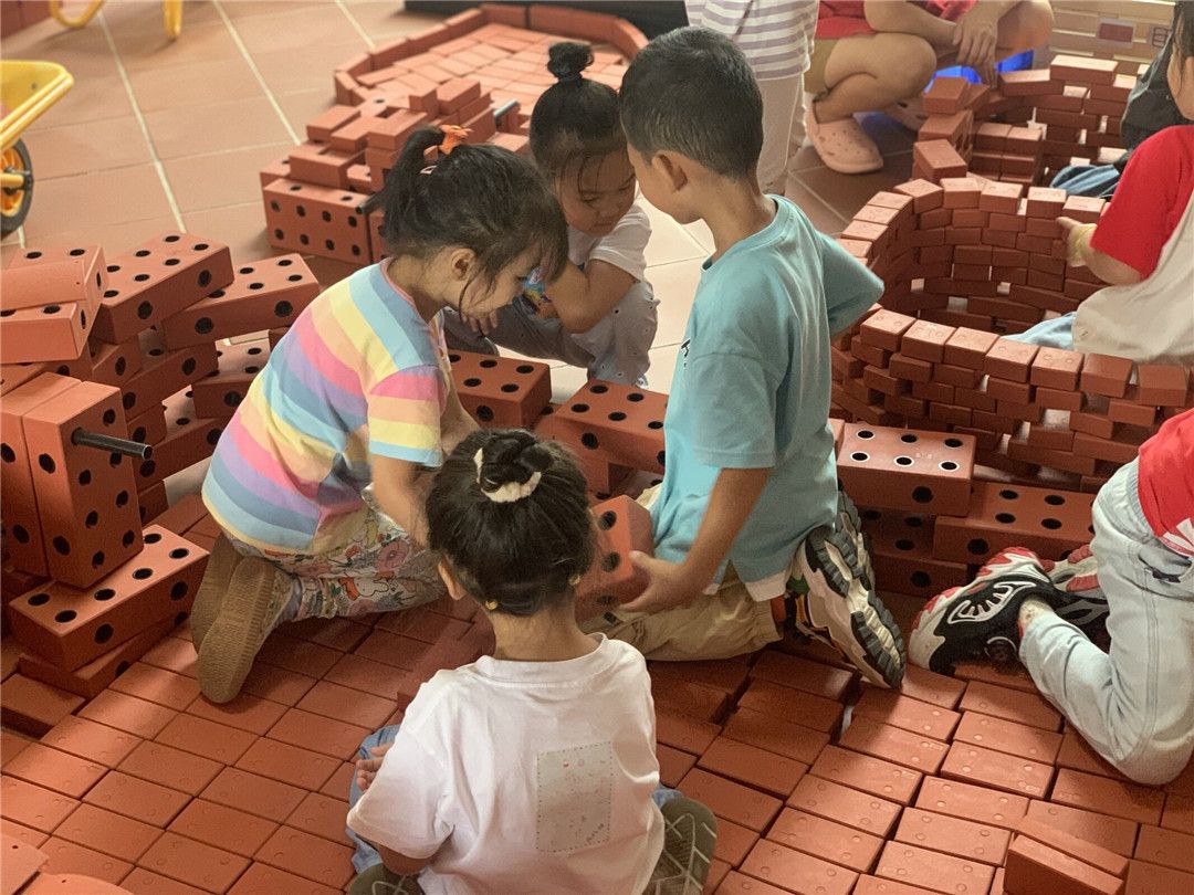 宝贝们在砖筑大师里有互动交流、有思维碰撞。他们通过垒高、