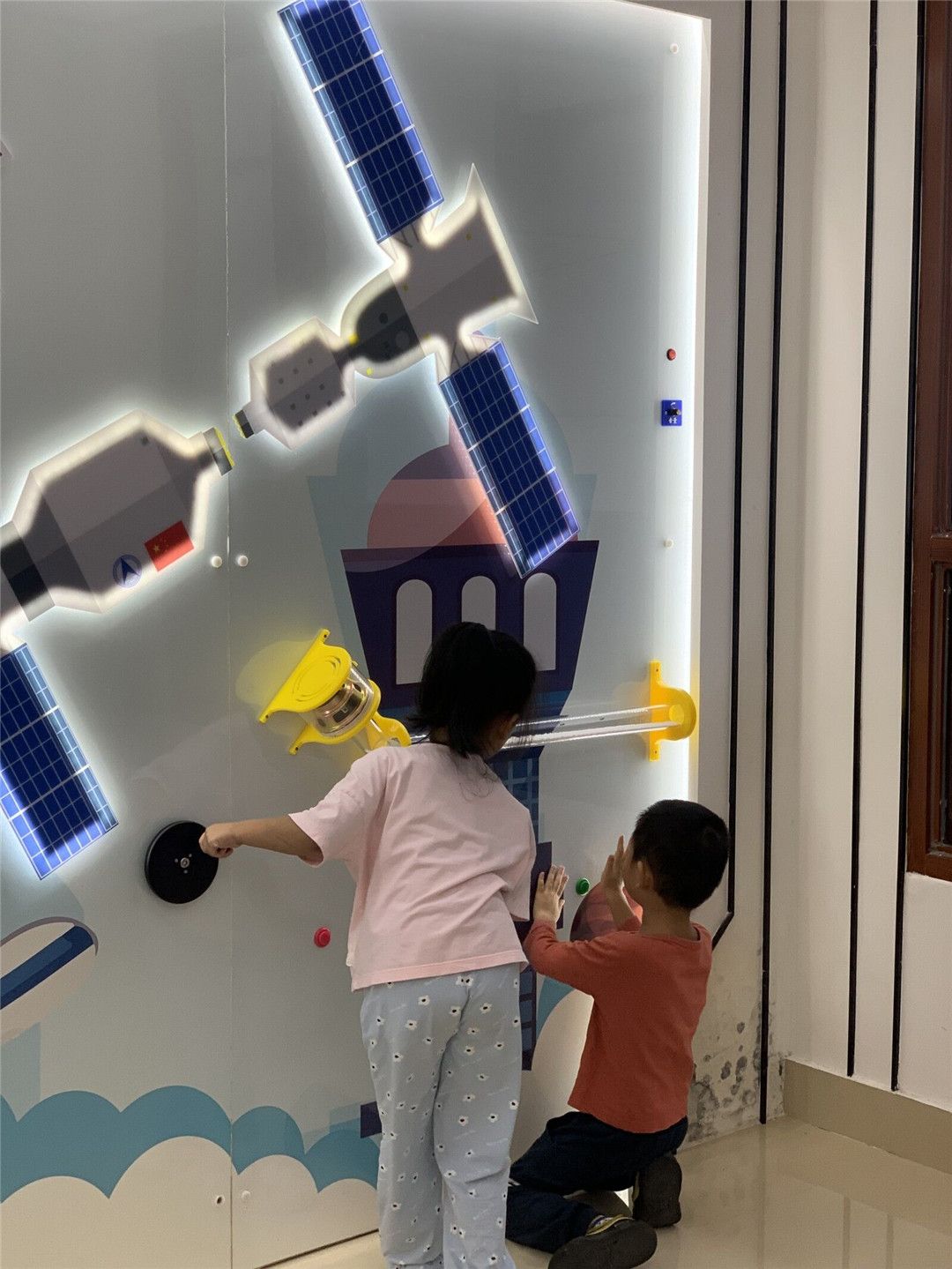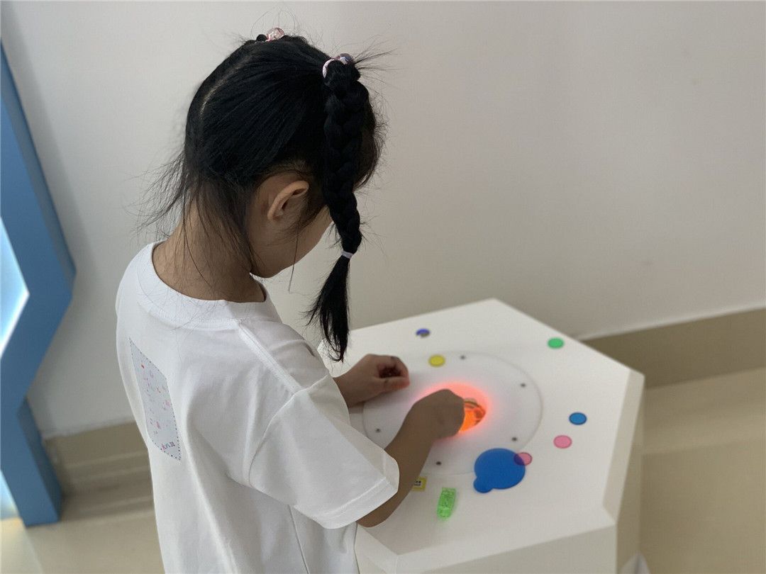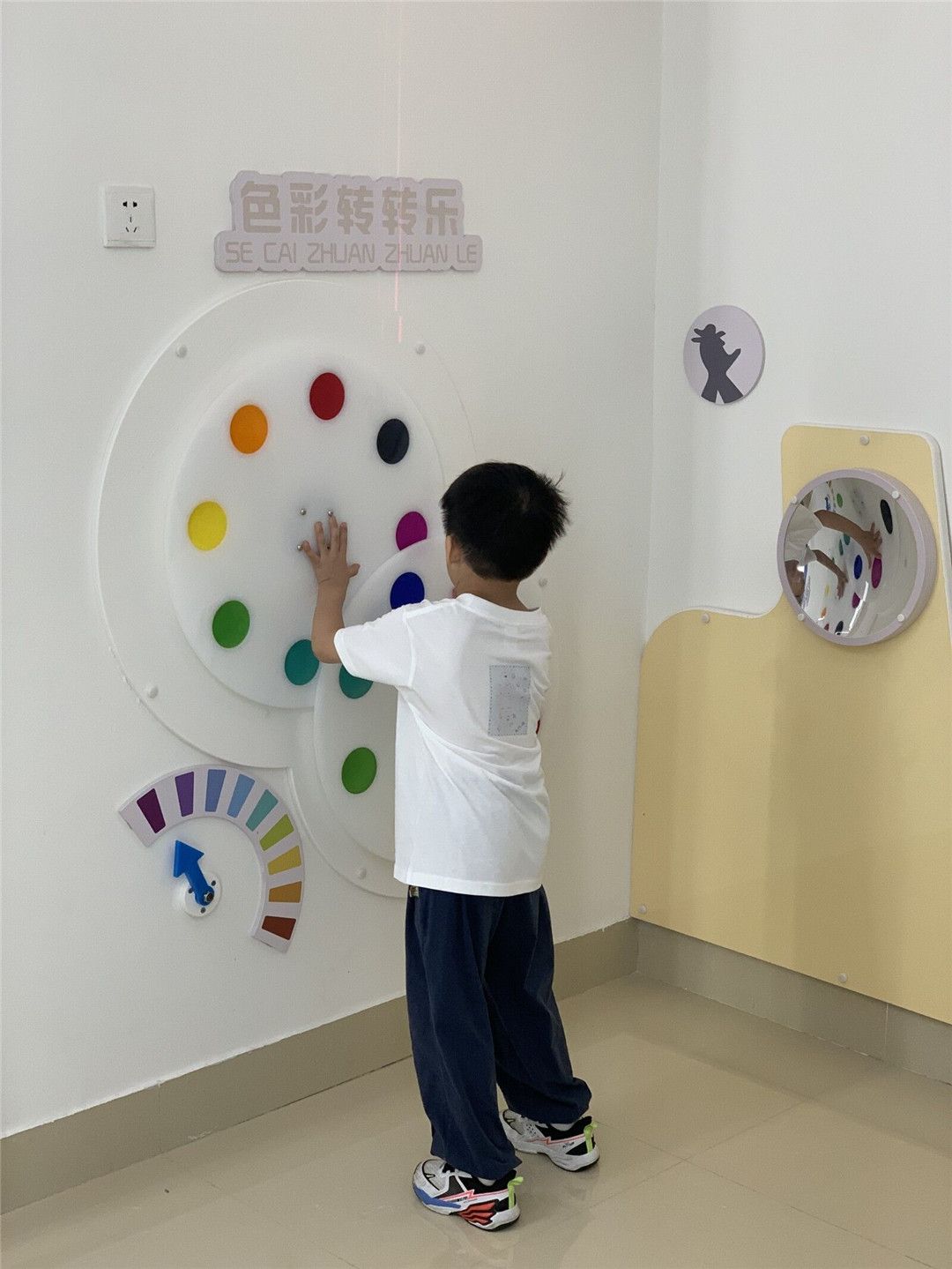 充满神秘色彩的科学区域,宝贝们来到了科学发现室,一起互动认识色彩、光电等知识,一起探索色彩世界、光和影的秘密。