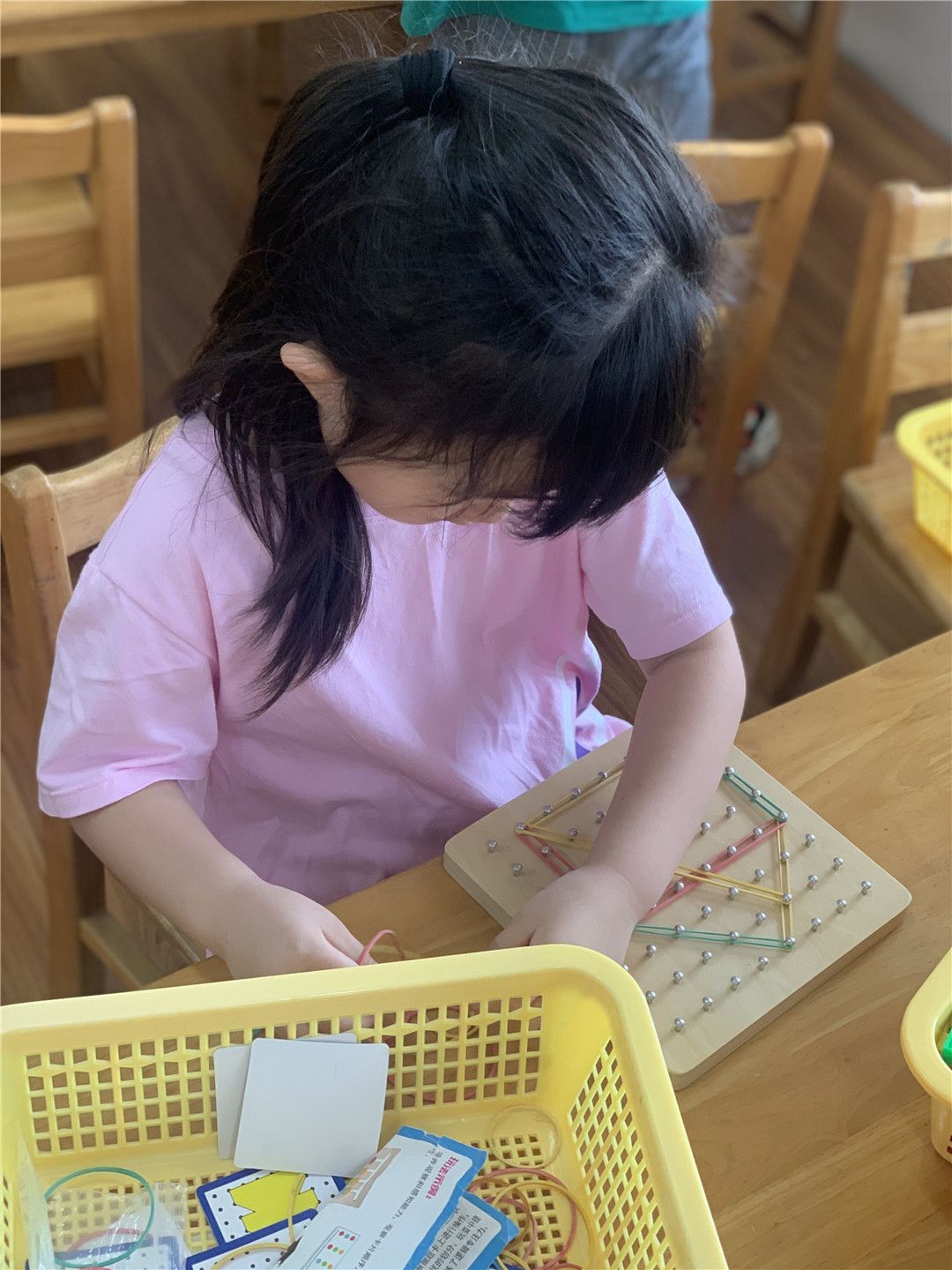 数学区一直以来都是备受宝贝们的热烈欢迎,他们对老师精心设计、制作的游戏材料十分感兴趣,材料的层次性和多样性也满足了不同宝贝的发展需求。