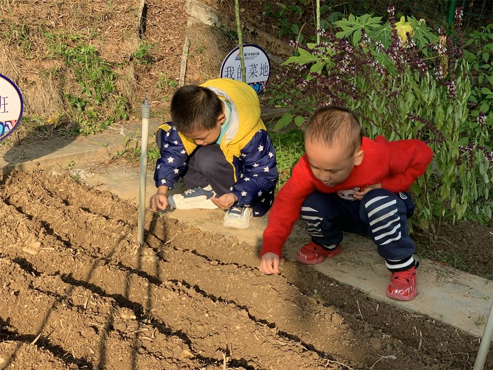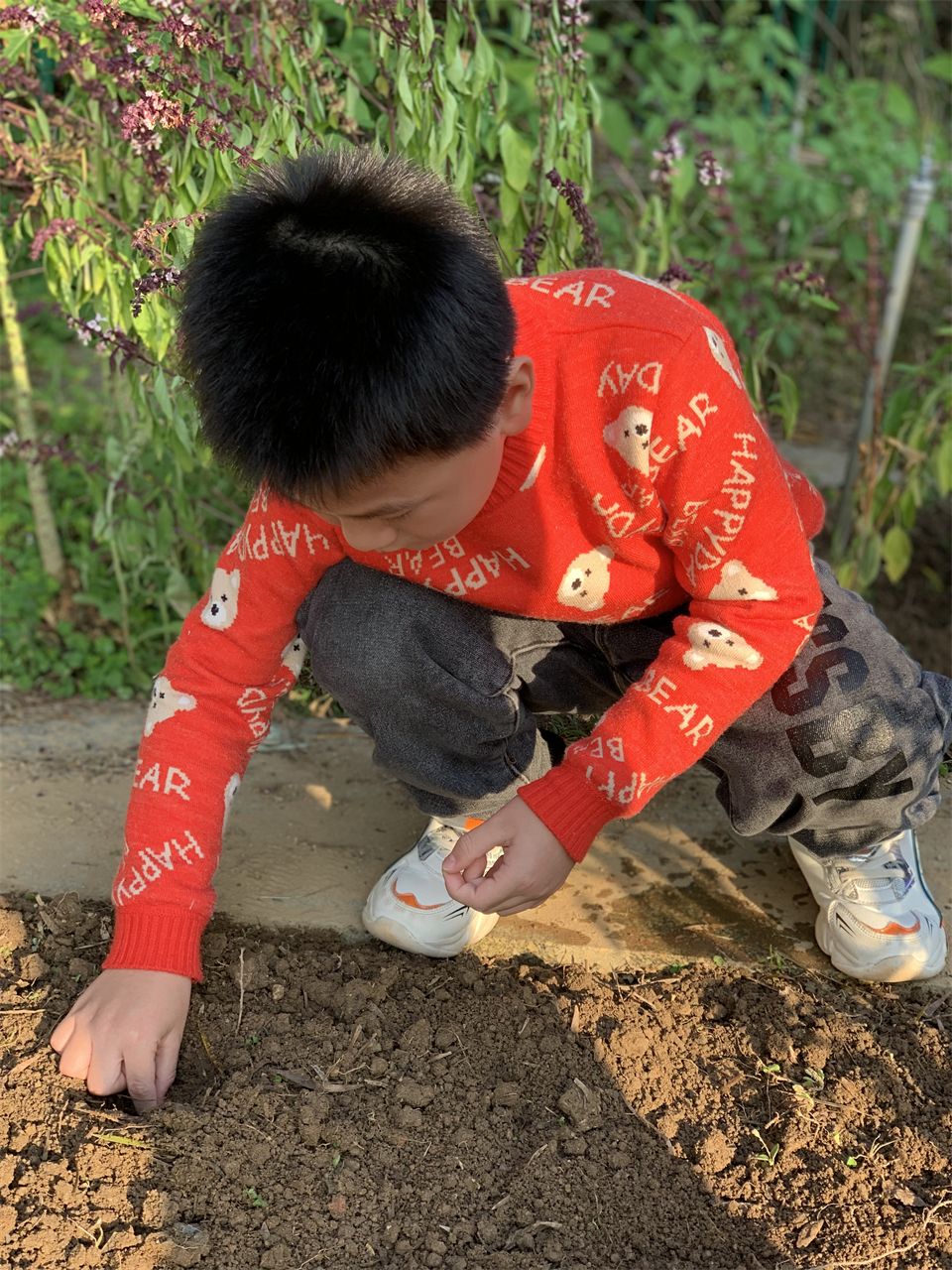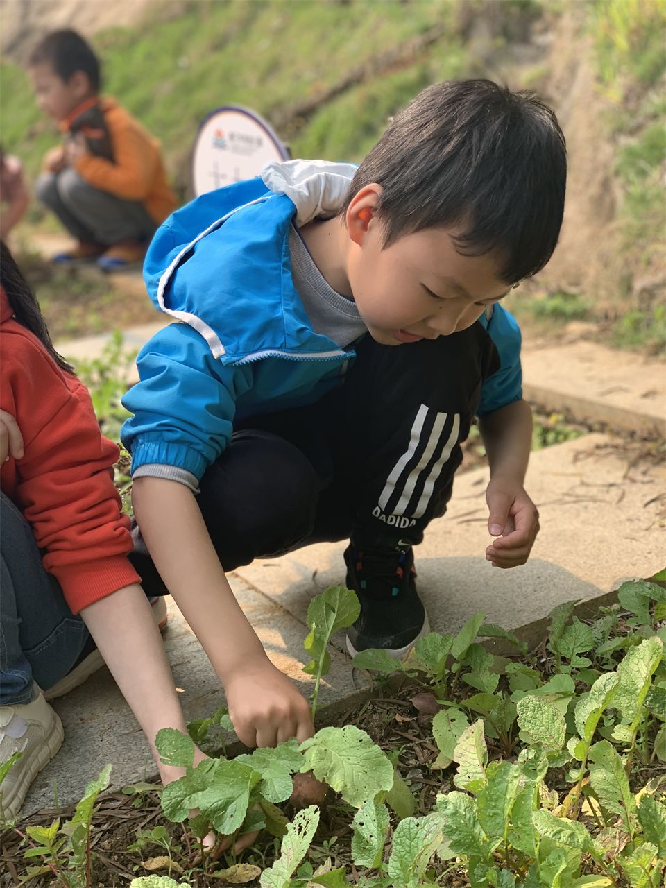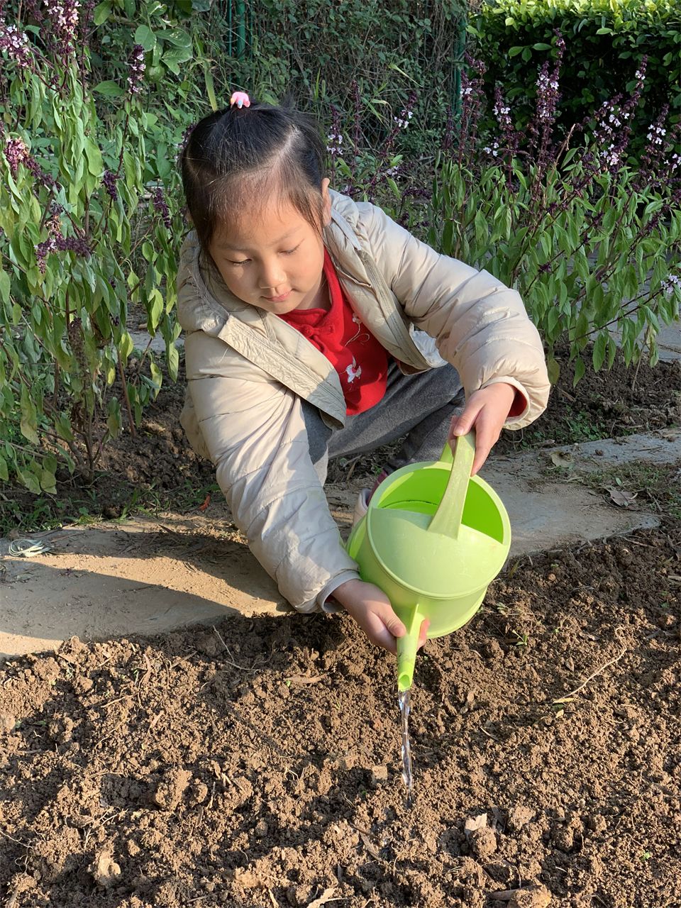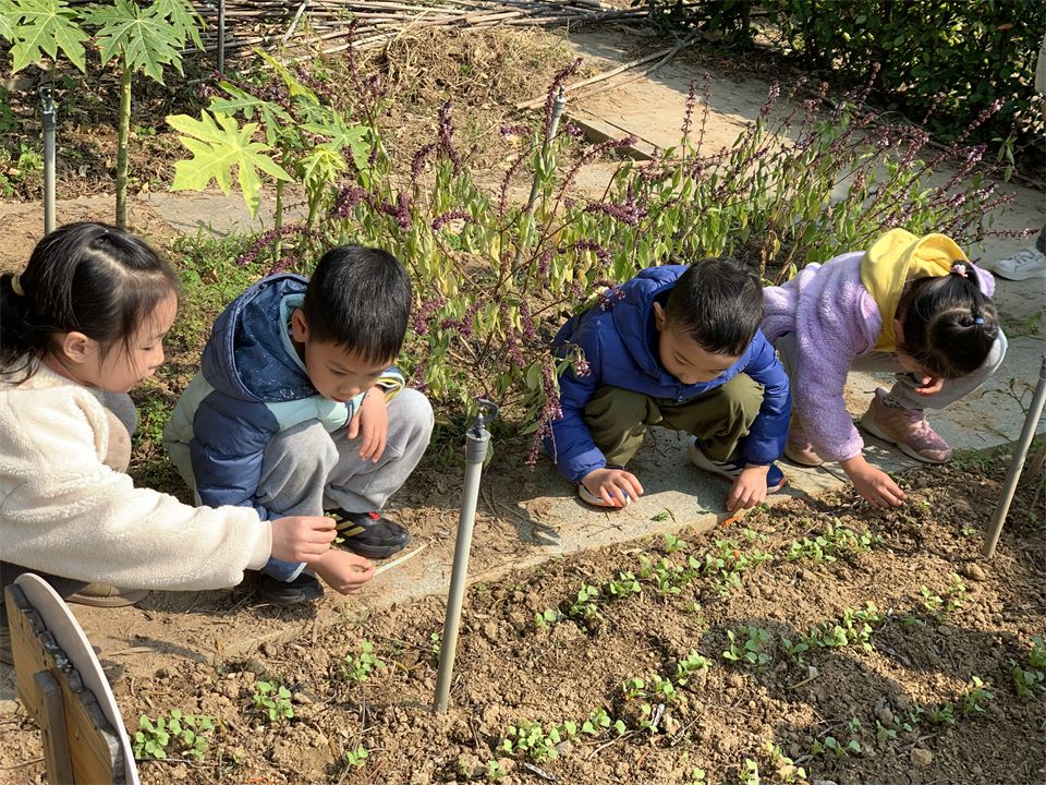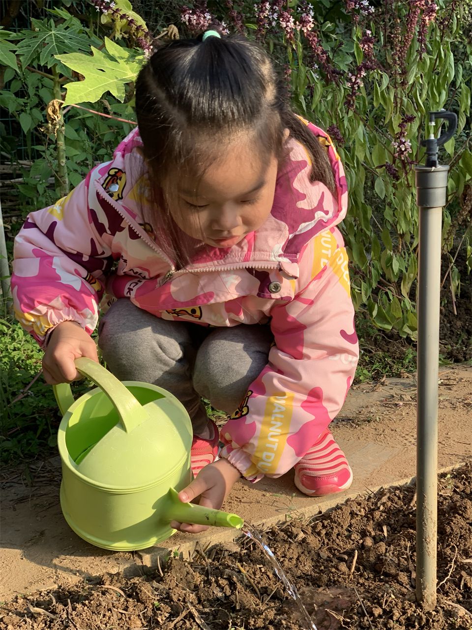 每天宝贝们都会到菜地看看自己亲手种下的樱桃萝卜,为他们浇水、除草。