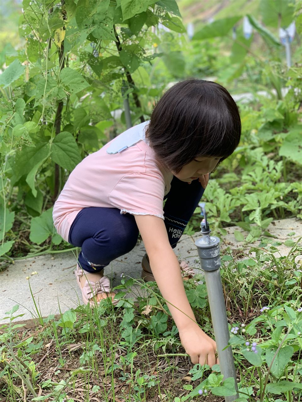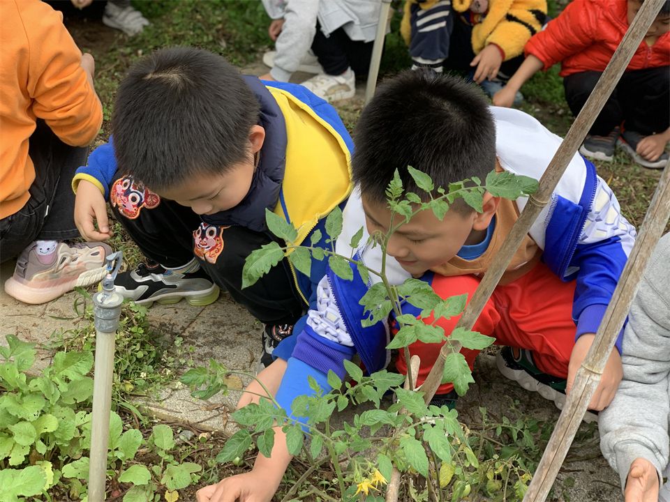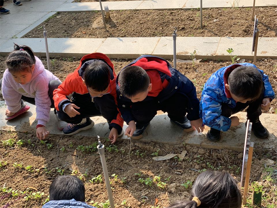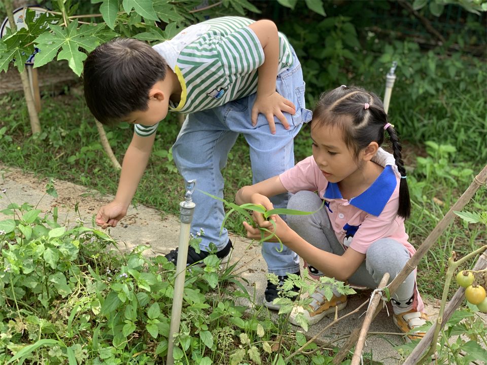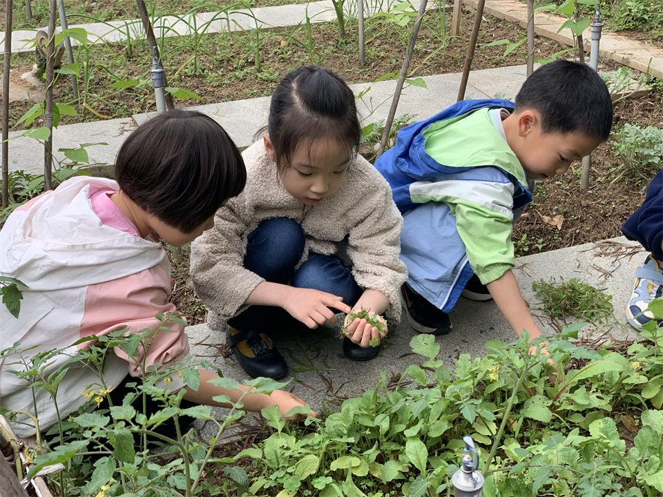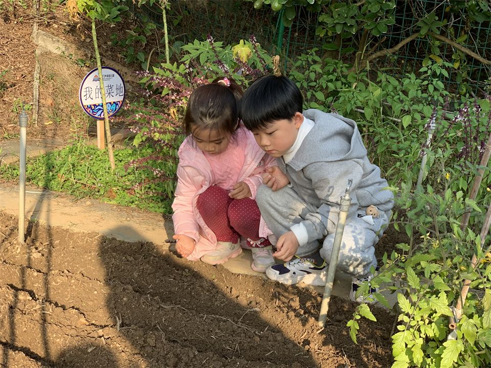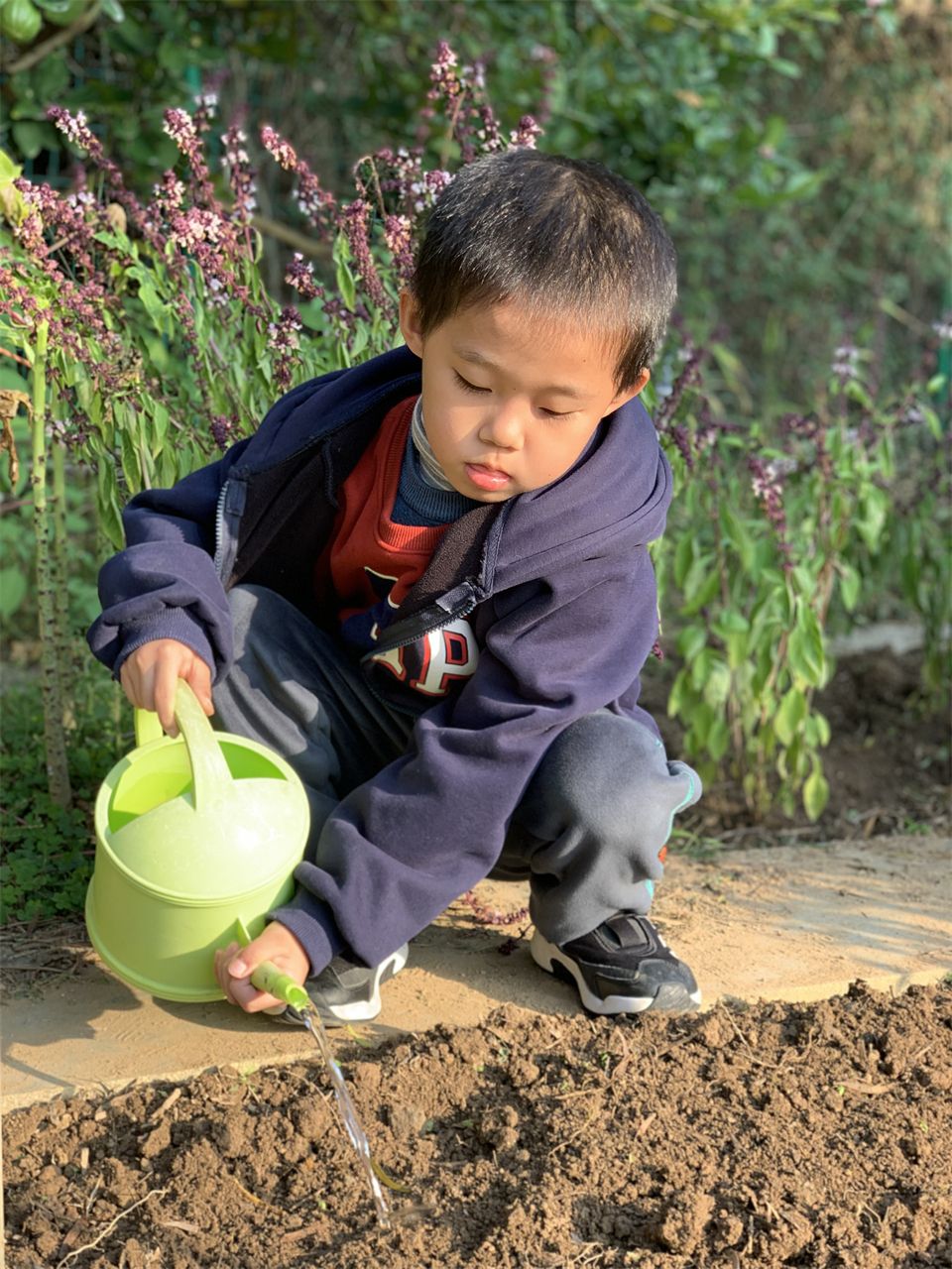 每天宝贝们都会到菜地看看自己亲手种下的樱桃萝卜,为他们浇水、除草。