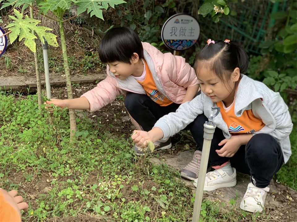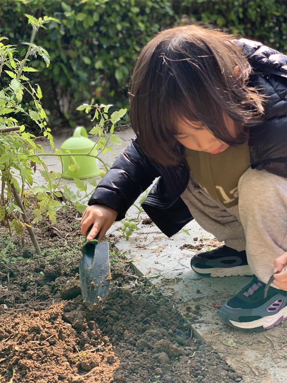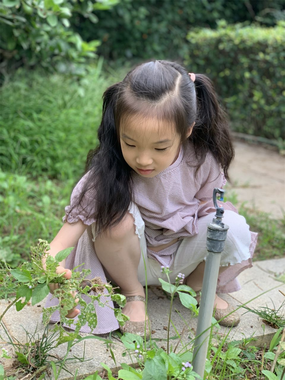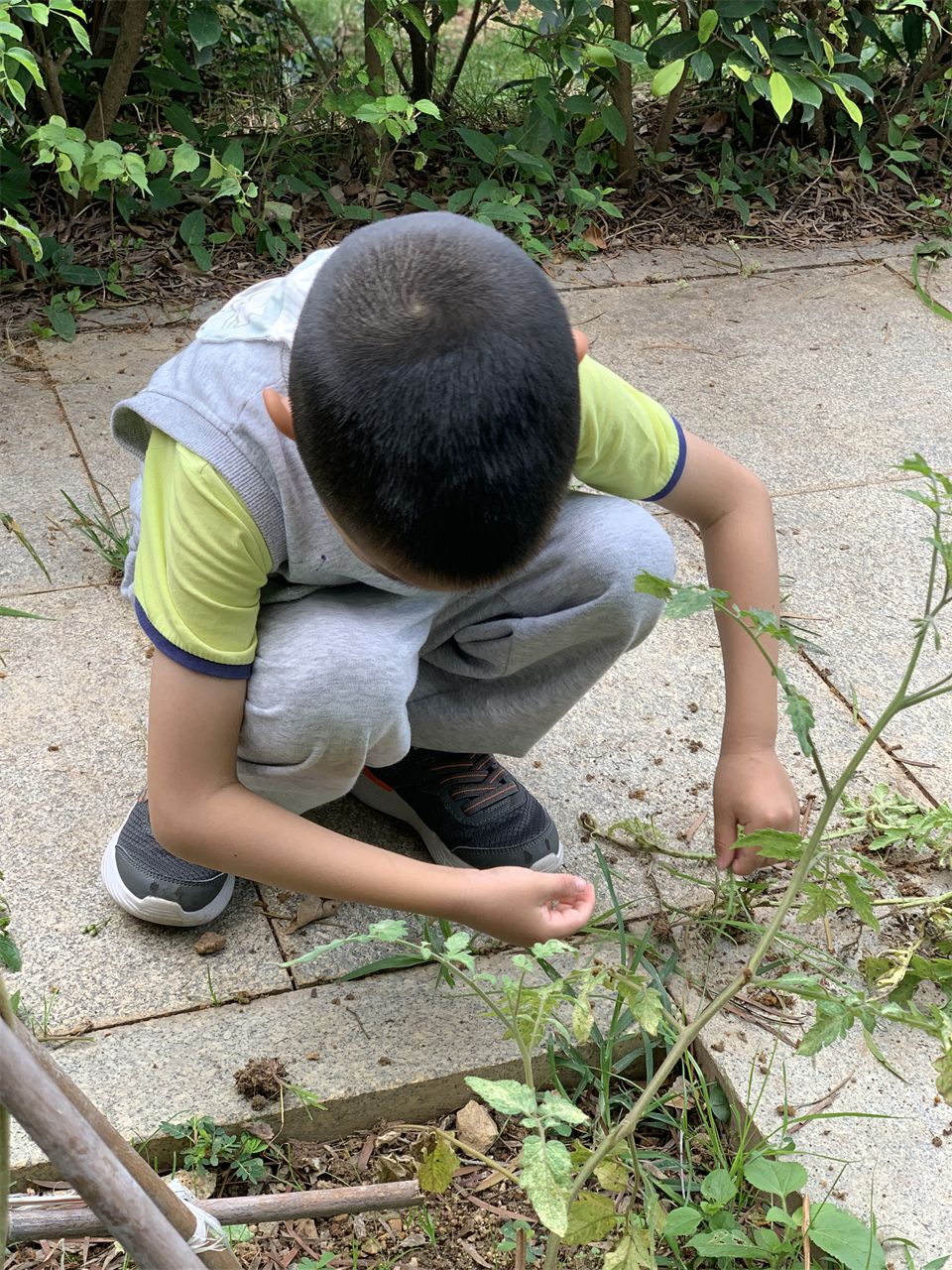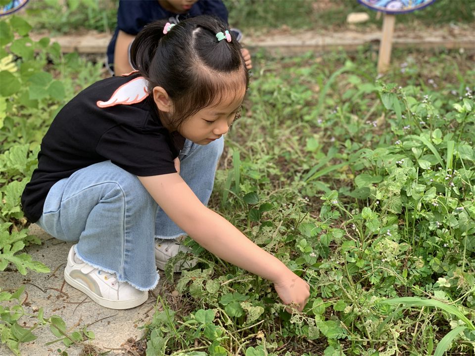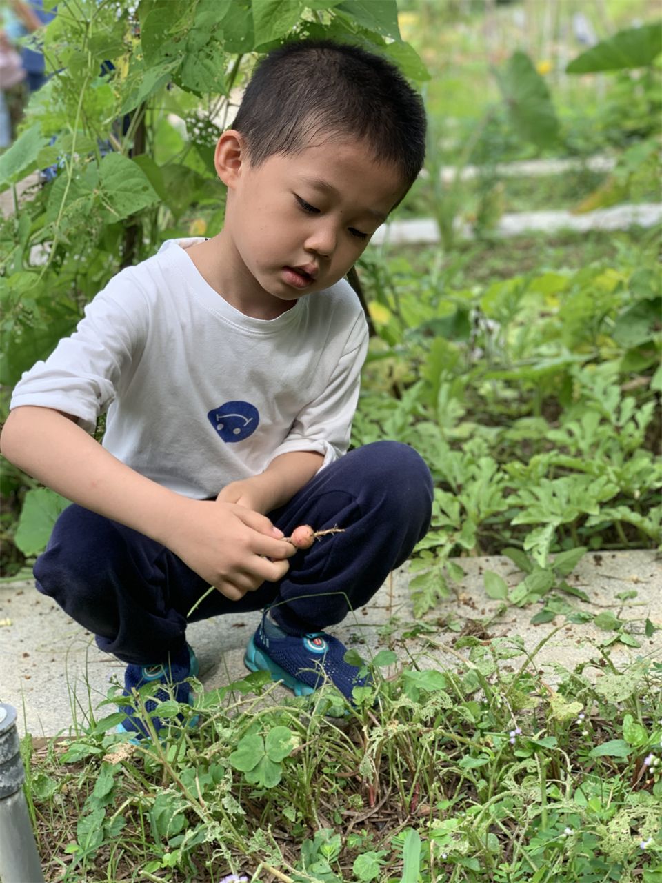 每天宝贝们都会到菜地看看自己亲手种下的樱桃萝卜,为他们浇水、除草。