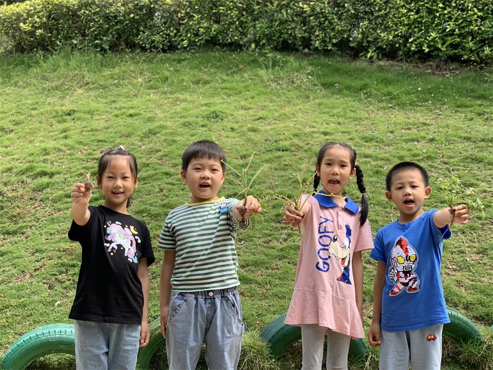 收获自己亲手种下的果实,宝贝们脸上都洋溢着幸福的笑容。