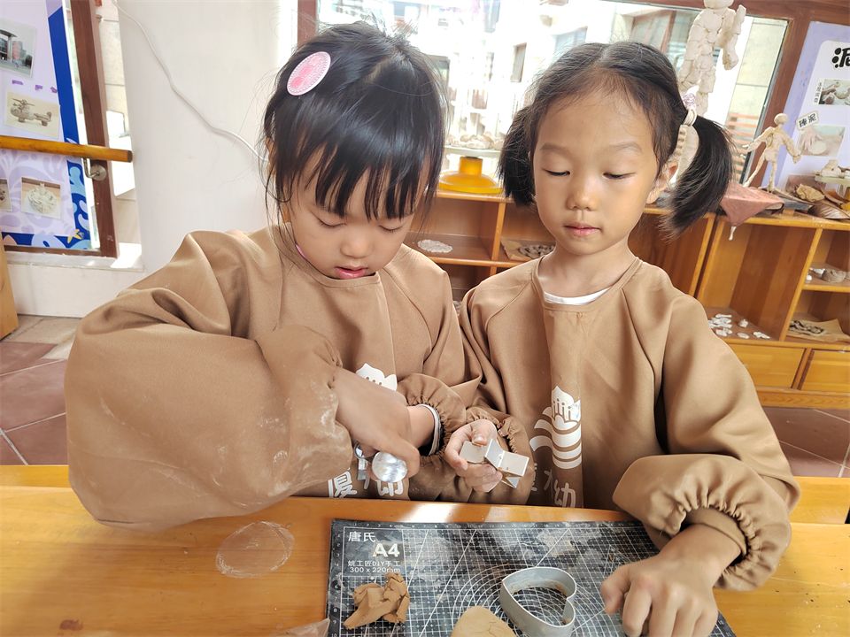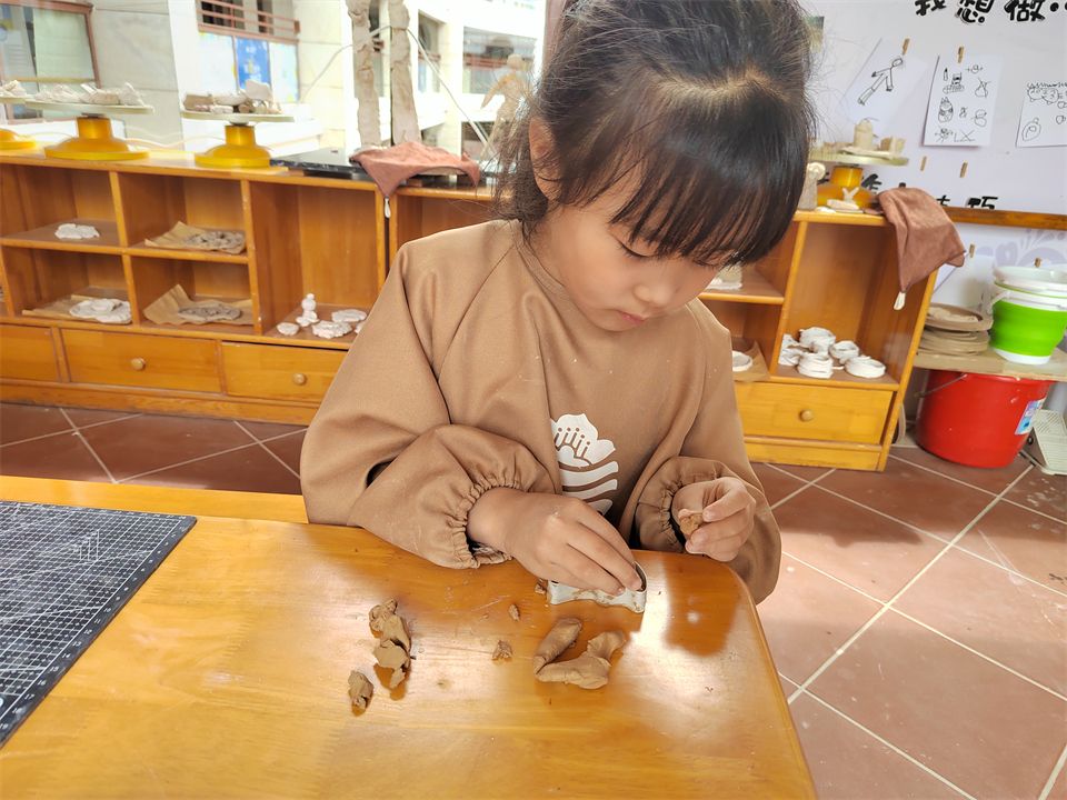 玩泥是孩子的天性,淘泥坊也是孩子们非常喜欢的区域活动之一,陶泥具有很强的塑造性,孩子们通过拍泥、塑形、装饰等方式,动手实践,感受泥塑的快乐。