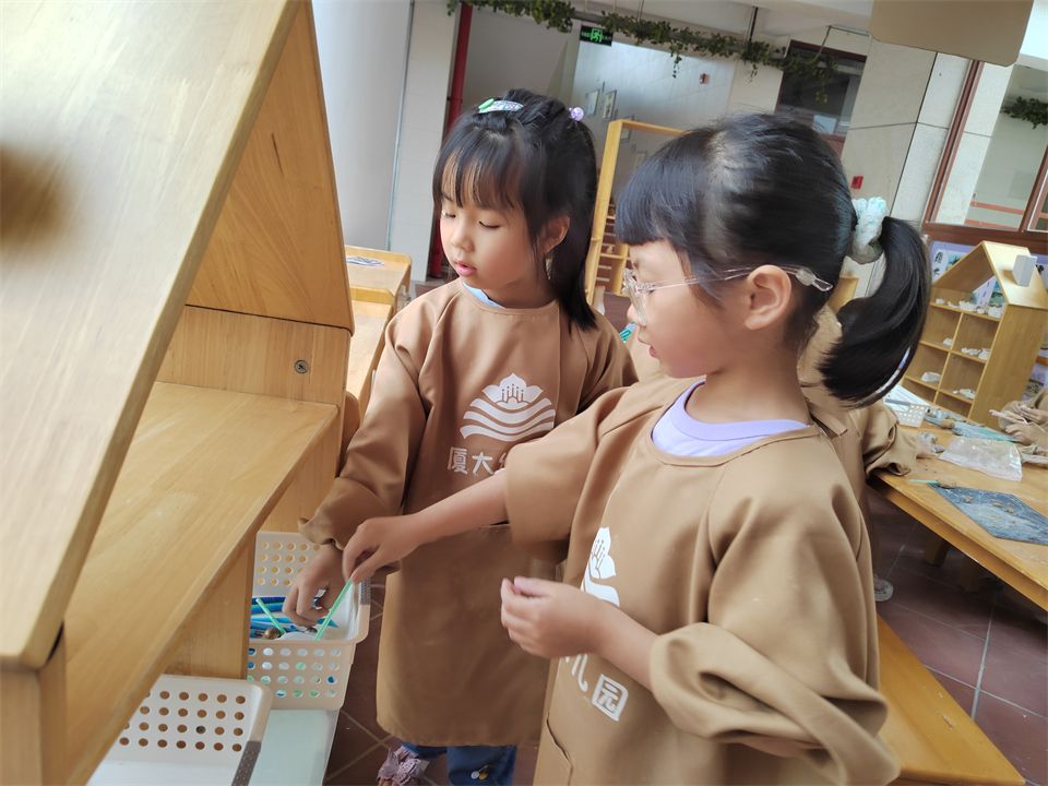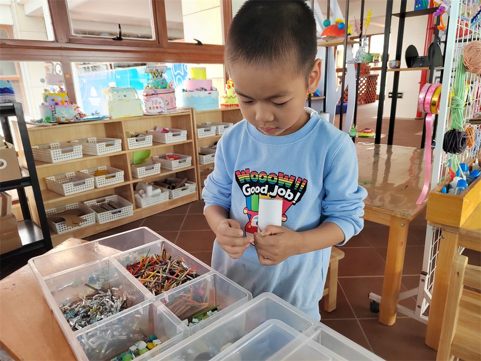 来到创意美劳室,琳琅满目的各类材料激发幼儿创作欲望,孩子们非常兴奋地开始了自己制作,亲自将自己的想象付诸实践。
