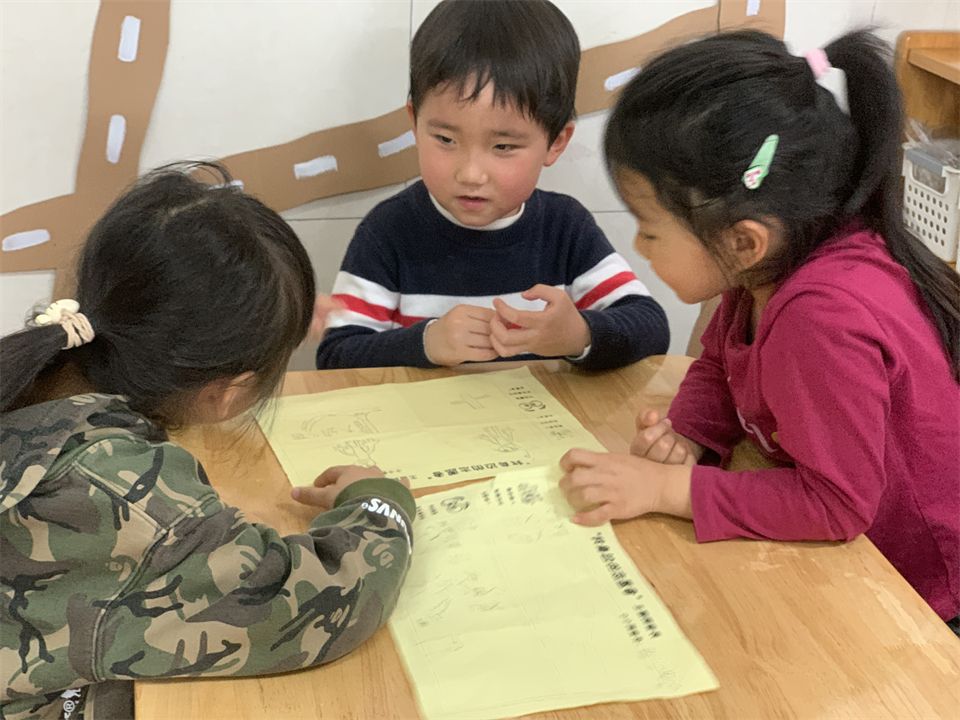 你瞧,他们做起了计划。采访前,小朋友们讨论做小记者时的礼貌和采访用语,制定志愿者采访记录表,分配任务。