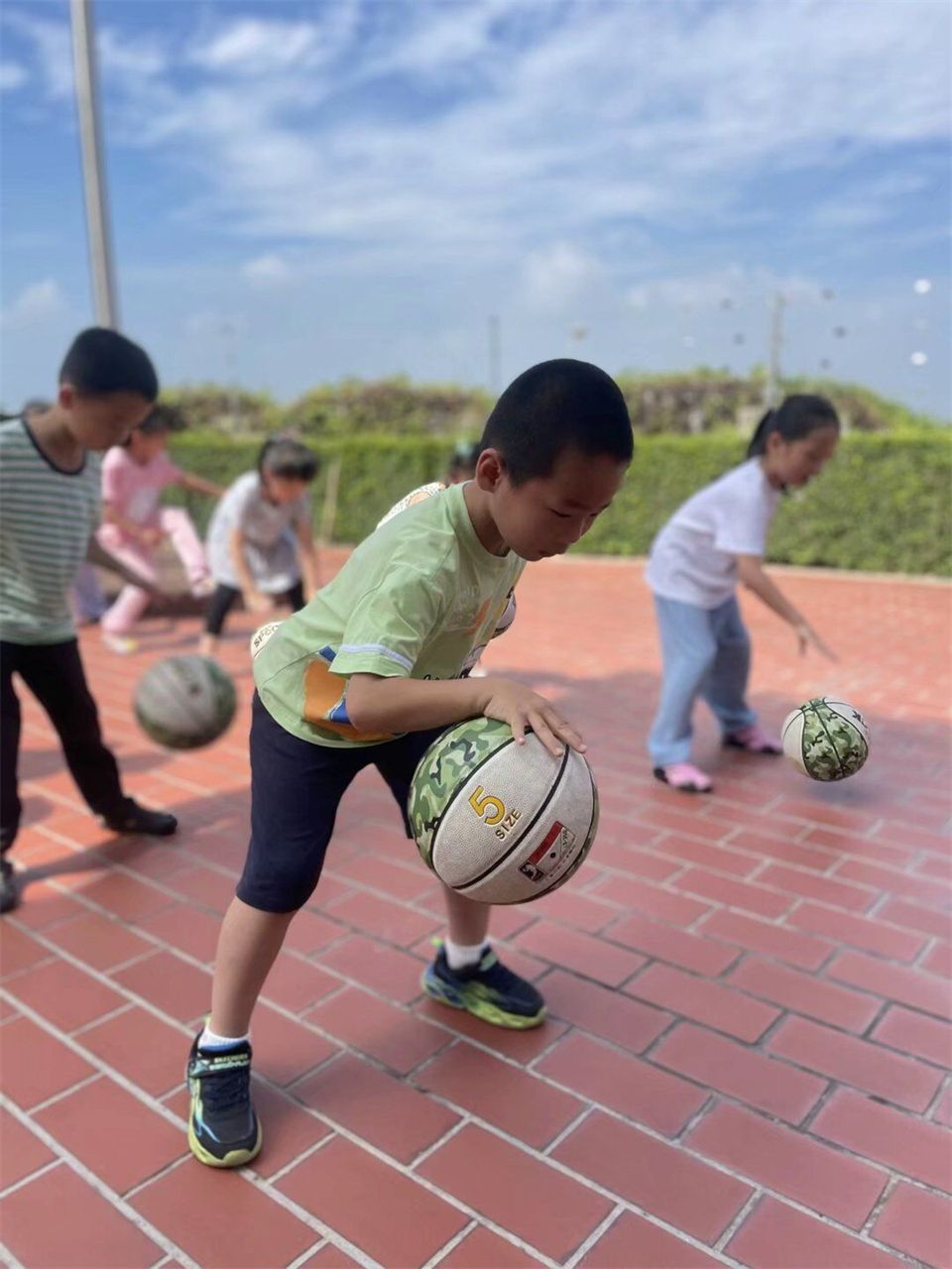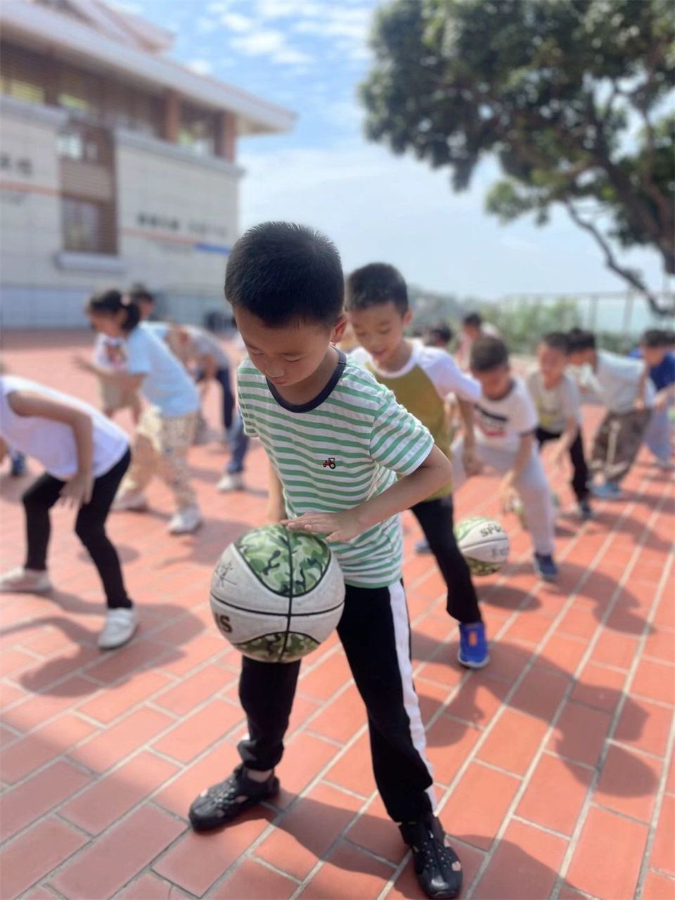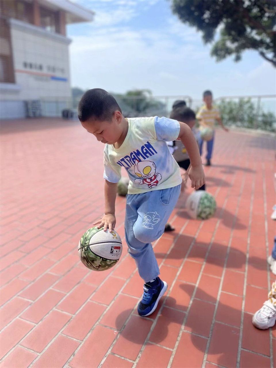 经过几次的训练,宝贝们开始花样炫球技:单手拍,双手拍,交替拍、绕着S行进拍、拍双球,合作拍,多人一起绕圈拍……运动彰显特色,篮球点燃激情,在玩转篮球的过程中,宝贝们玩出了乐趣,玩出了创意,收获了健康、快乐与自信!