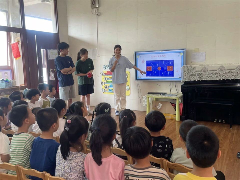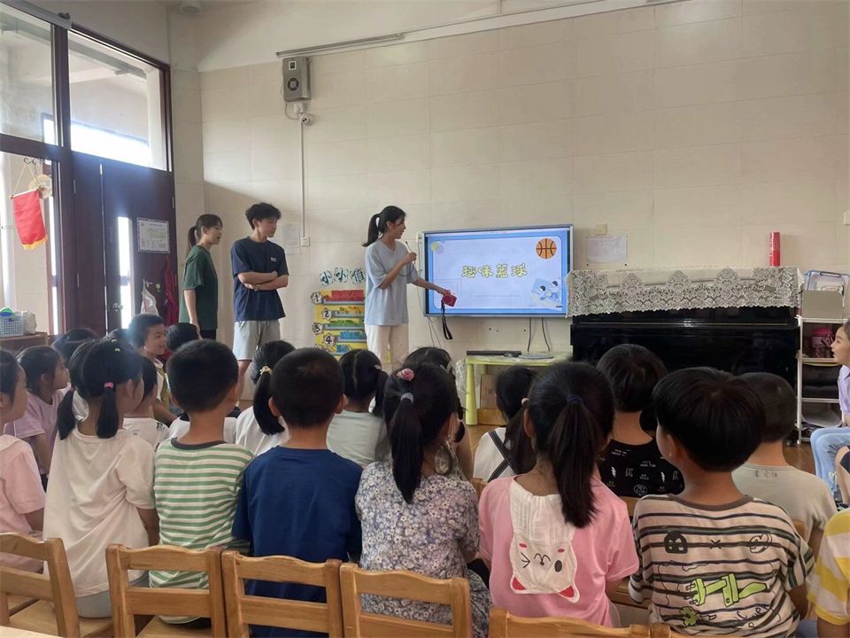 瞧!大学生助教们正在耐心地为宝贝们讲解着关于篮球的知识,宝贝们通过观看图片和有趣的视频,认真地听讲、思考,并积极举手回答相关的问题,真是学到了不少的篮球知识与本领呢!