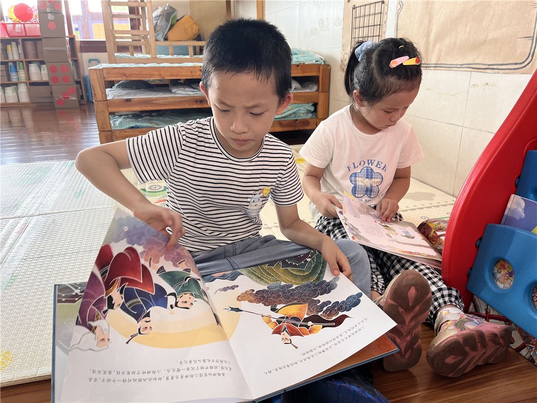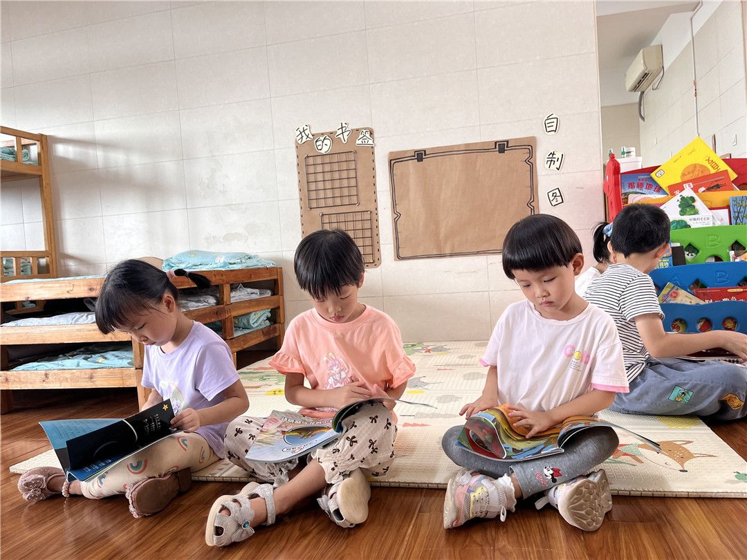 阅读区中,孩子们从书本中了解到世界的缤纷多彩,亦或是沉浸在书本中描绘的美丽童话世界中。