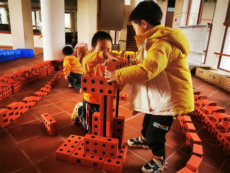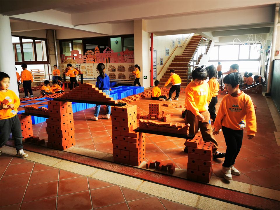 “嘉庚主楼是戴斗笠的哦。” “搭建我们的幼儿园还要记得搭建小山坡哦!”……我们是未来小小建筑师。