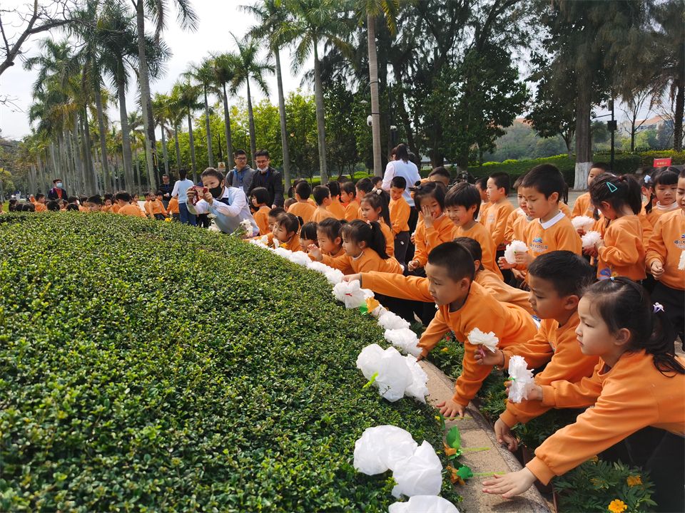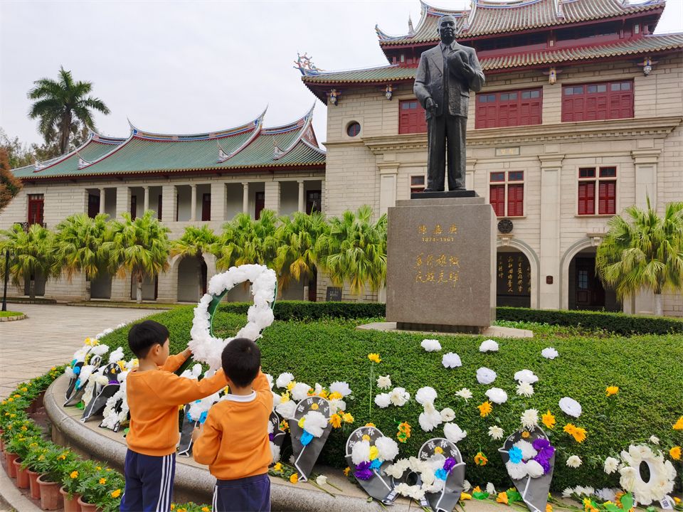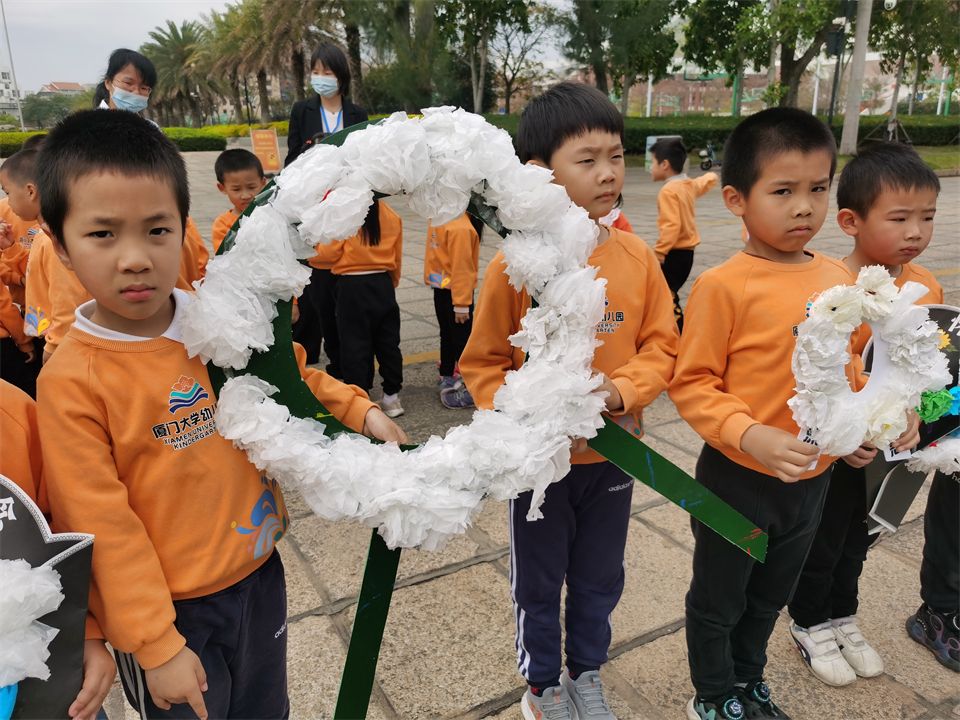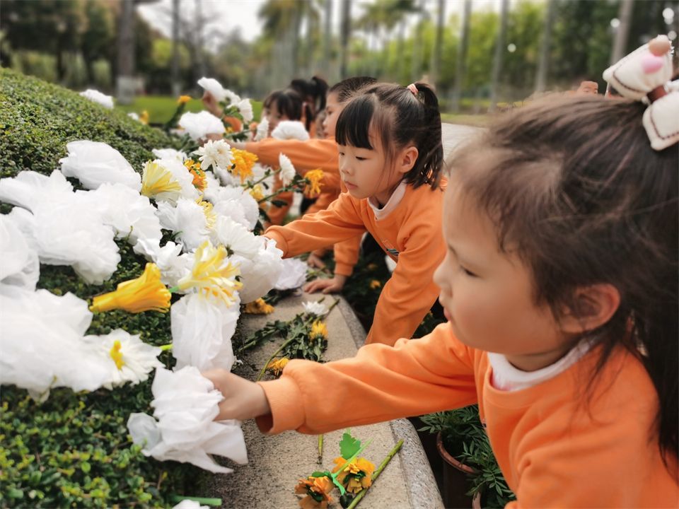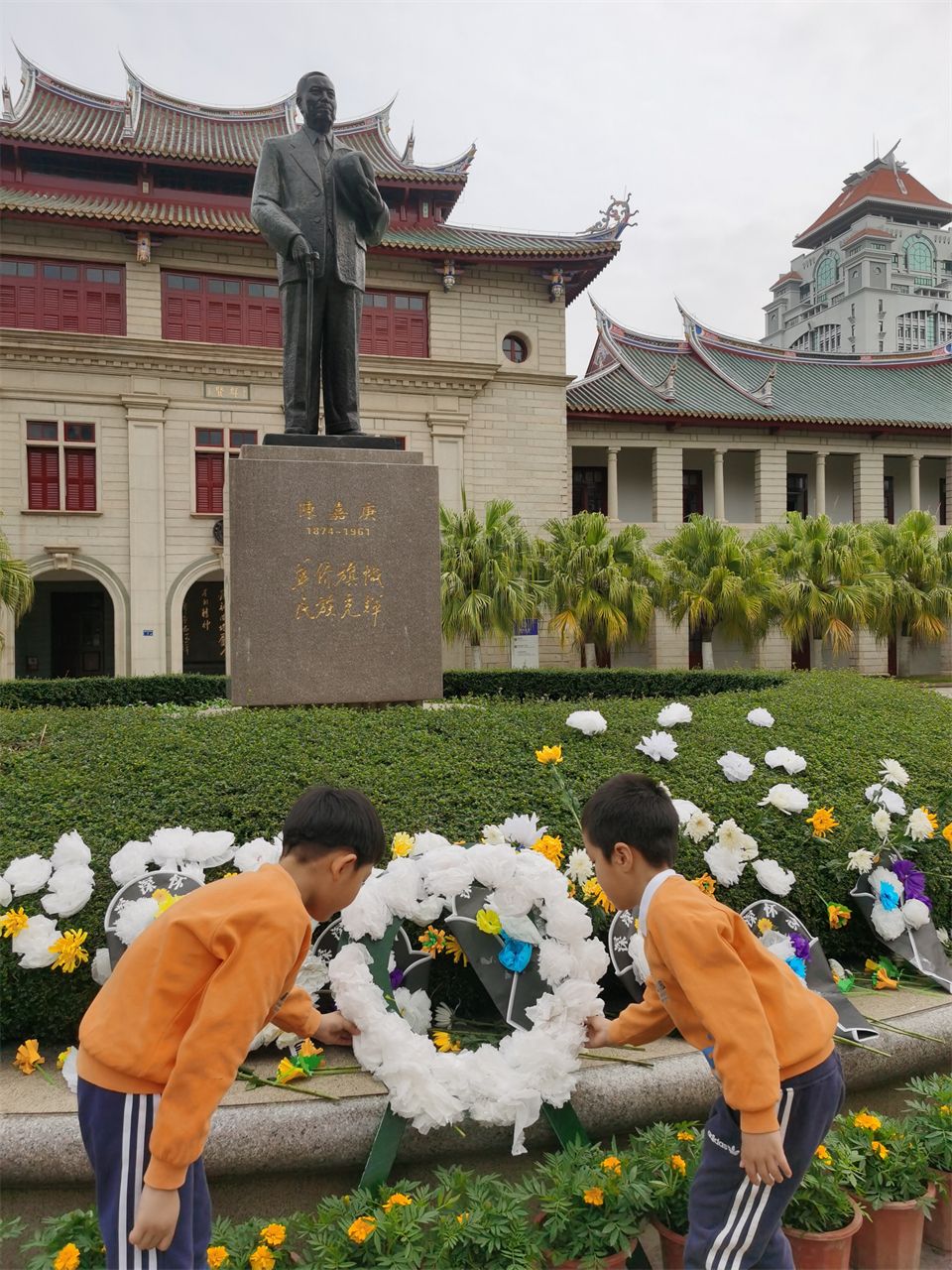 通过这次参观,孩子们感受到了厦门大学一百多年来积淀的文化氛围,牢牢记住“宁可卖大厦,也要支持厦大”,一生爱国、一生兴学的陈嘉庚先生。4月5日清明节是中国的感恩节。听说,菊花的花语是“怀念悼念”,可以用来表达对逝去之人的尊敬与缅怀。清明节前夕,孩子们商量着剪一剪,贴一贴,制作一朵朵别致的手工菊花、花束、花圈来缅怀校主。