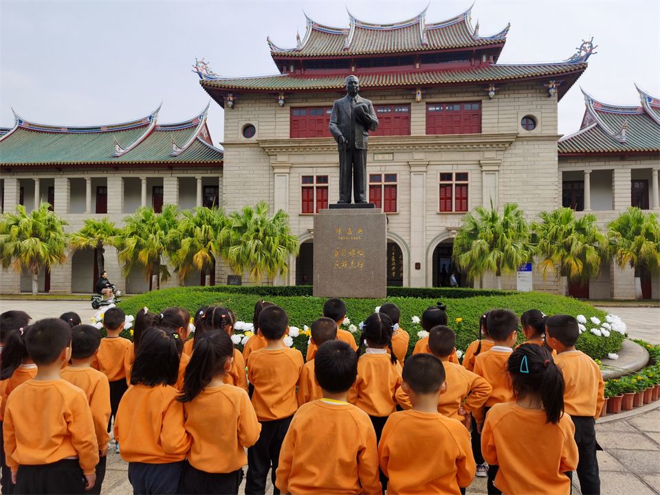 一踏进厦大校门,厦门大学的创办者陈嘉庚先生的雕像高高矗立着。每次经过,孩子们对厦门大学的过去都充满了好奇。人间四月芳菲始,在老师的带领下孩子们有序地进入厦大校史馆,在这一连接过去、现在和未来的桥梁里,开启一段触摸历史,重温经典的探索之旅。
